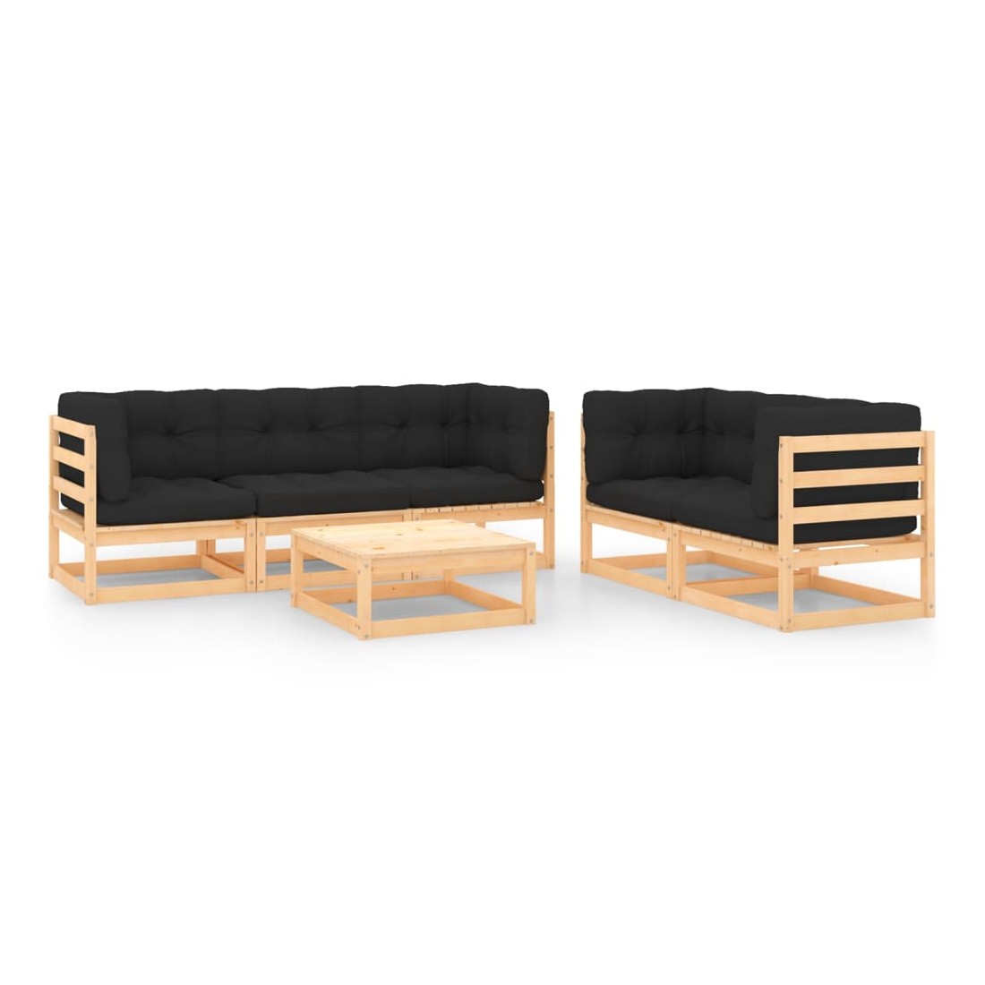 Salon de jardin 6 pcs avec coussins Bois de pin massif