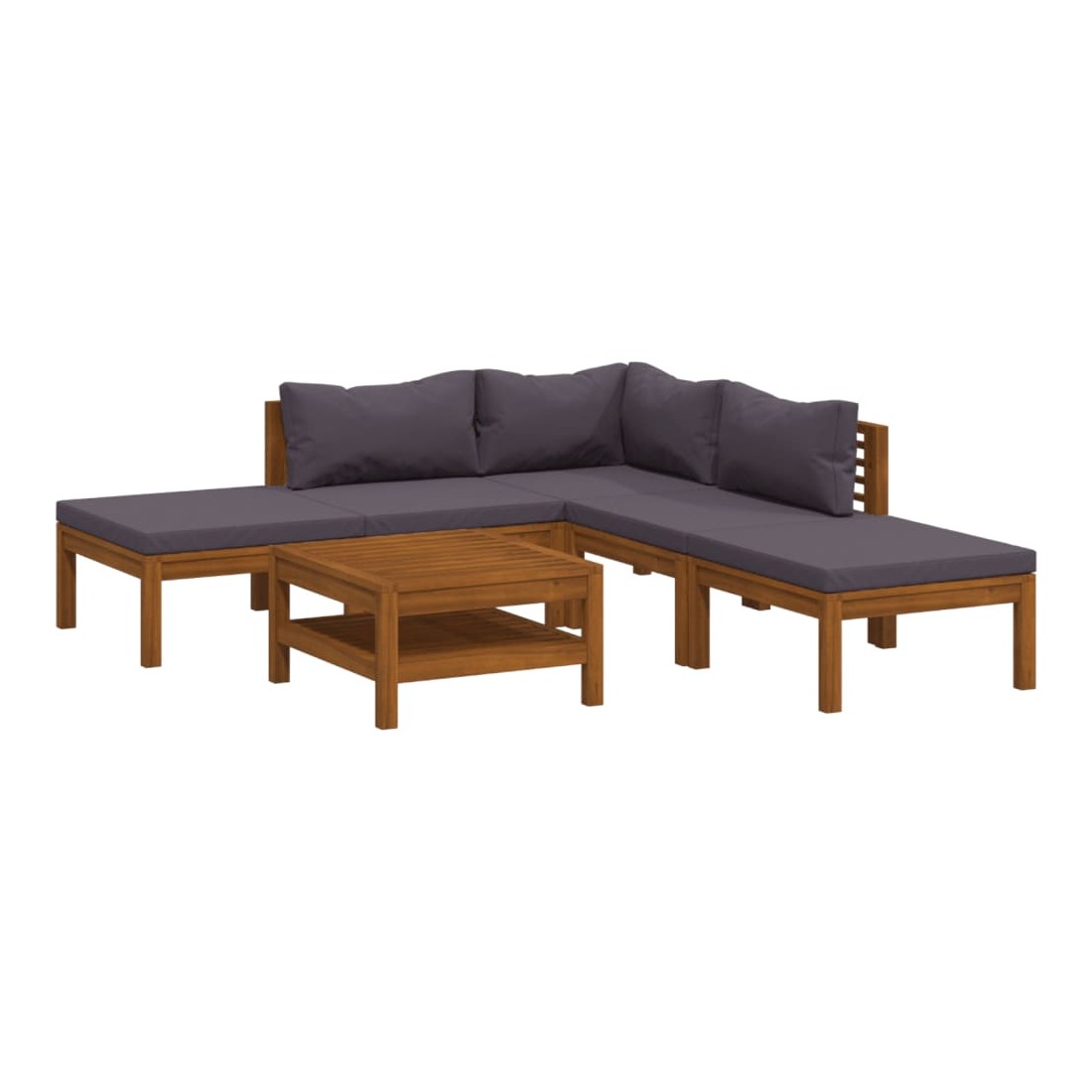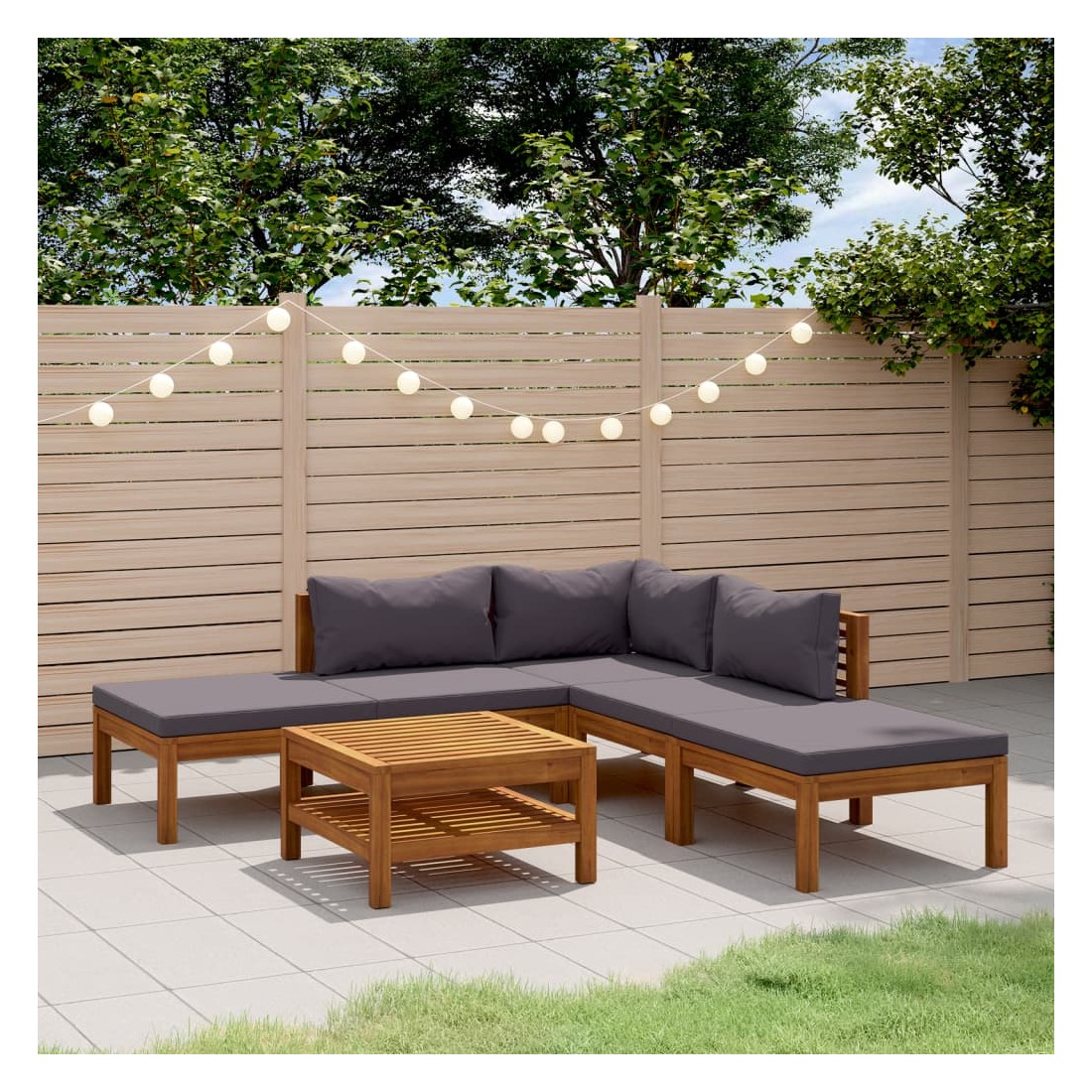 Salon de jardin 6 pcs avec coussin Bois d'acacia solide