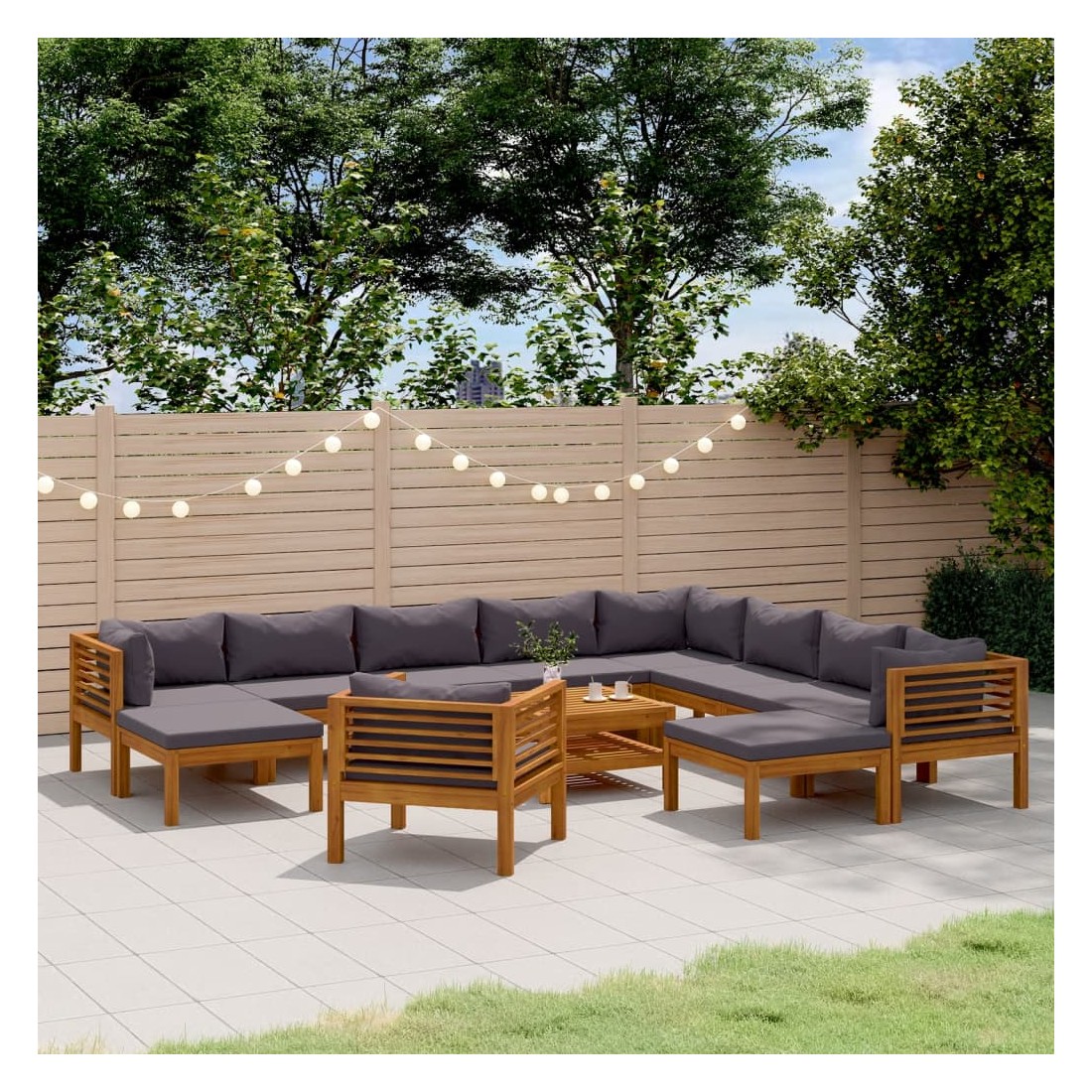 Salon de jardin 12 pcs avec coussin Bois d'acacia solide