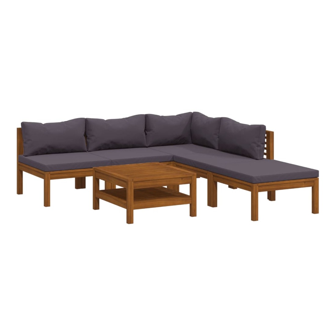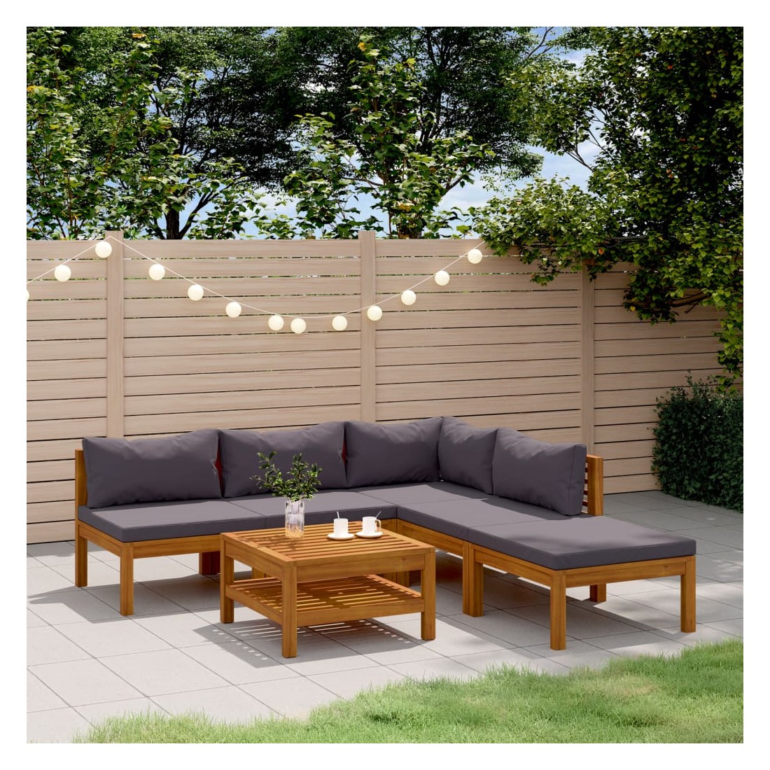 Salon de jardin 6 pcs avec coussin Bois d'acacia solide