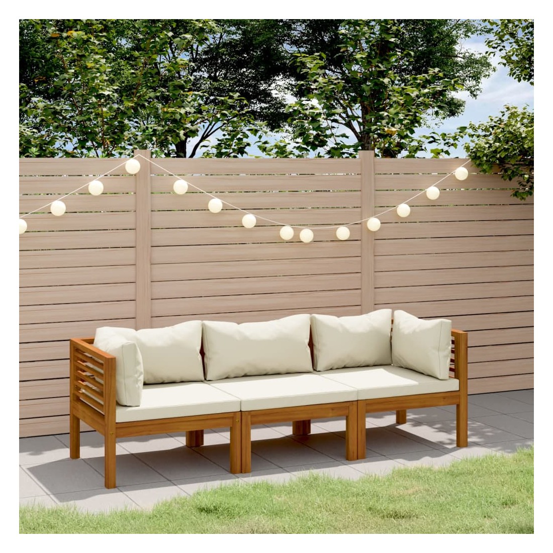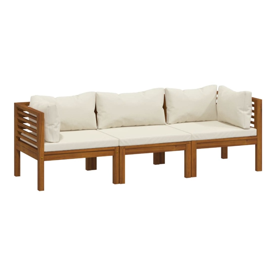 Canapé de jardin 3 places et coussin crème Bois d'acacia massif