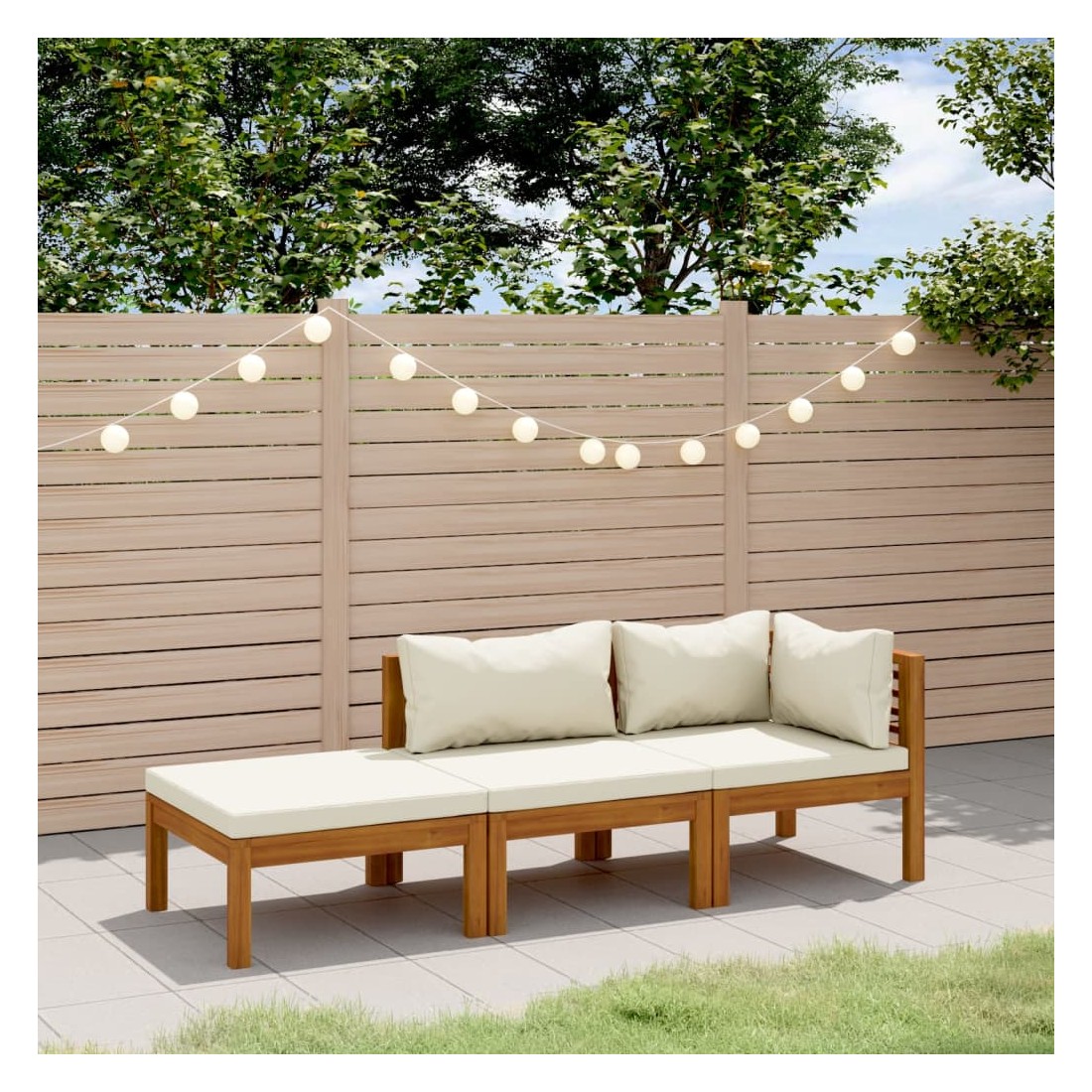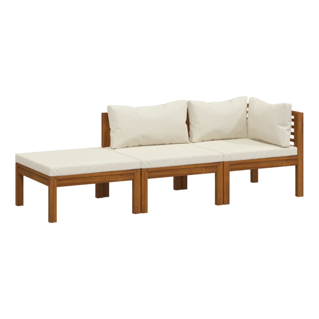 Salon de jardin 3 pcs avec coussin crème Bois d'acacia solide