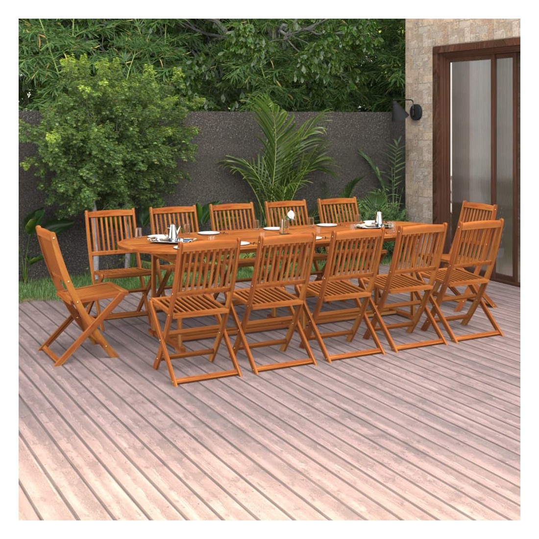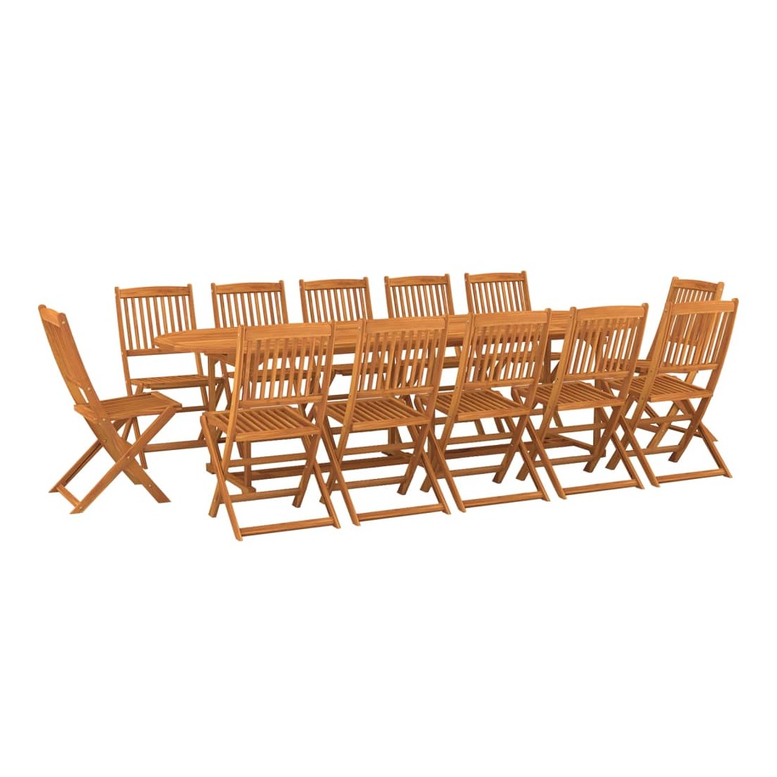Créez une esthétique convaincante et uniforme dans votre espace extérieur avec cet ensemble de salle à manger de jardin en bois ! Cet ensemble de salle à manger d'extérieur est fabriqué en bois d'acacia massif, un bois dur tropical, qui est résistant aux intempéries et durable pour des années d'utilisation. La surface finie à l'huile est facile à nettoyer avec un chiffon humide. De plus, les chaises de patio peuvent être pliées dans un format compact pour économiser de l'espace lorsqu'elles ne sont pas utilisées. Remarque : afin de prolonger la durée de vie des meubles d'extérieur, nous vous recommandons de les protéger avec une housse imperméable.