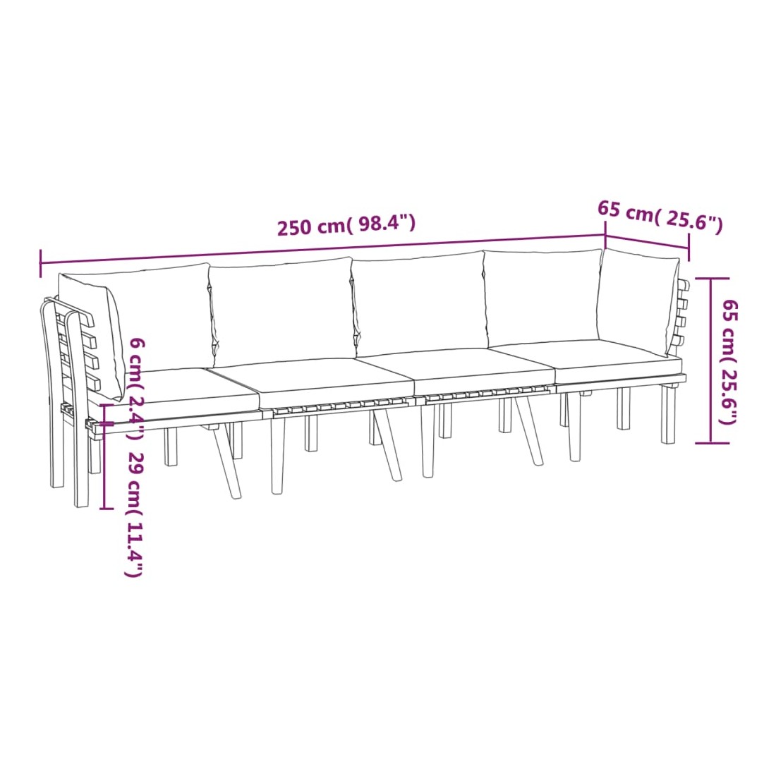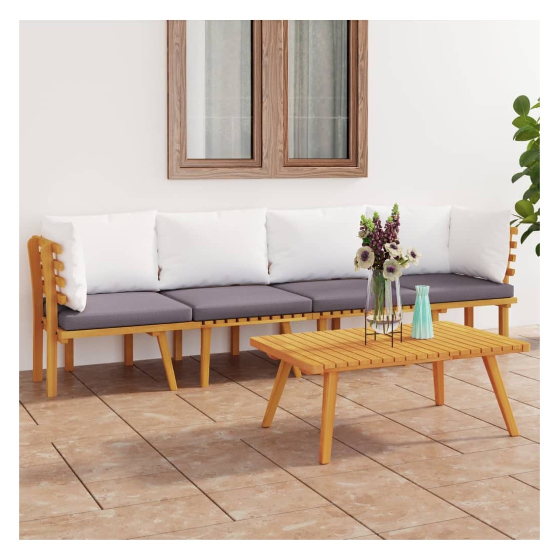 Ce salon de jardin en bois est un excellent choix pour vous détendre et profiter du beau temps, faire une sieste ou discuter avec votre famille ou vos amis. Avec un design à lattes intemporel, l’ensemble de salon en bois ajoute une touche de charme rustique à votre patio, terrasse ou jardin. Fabriqué en bois d'acacia massif, l'ensemble de mobilier d'extérieur est résistant aux intempéries et très durable. Combiné avec les coussins bien rembourrés, cet ensemble de salon de jardin offre le plus grand confort. Vous pouvez le combiner avec d'autres segments modulaires pour créer vos propres configurations d'ensemble de salon de jardin ! Remarque : afin de prolonger la durée de vie des meubles d'extérieur, nous vous recommandons de les protéger avec une housse imperméable.