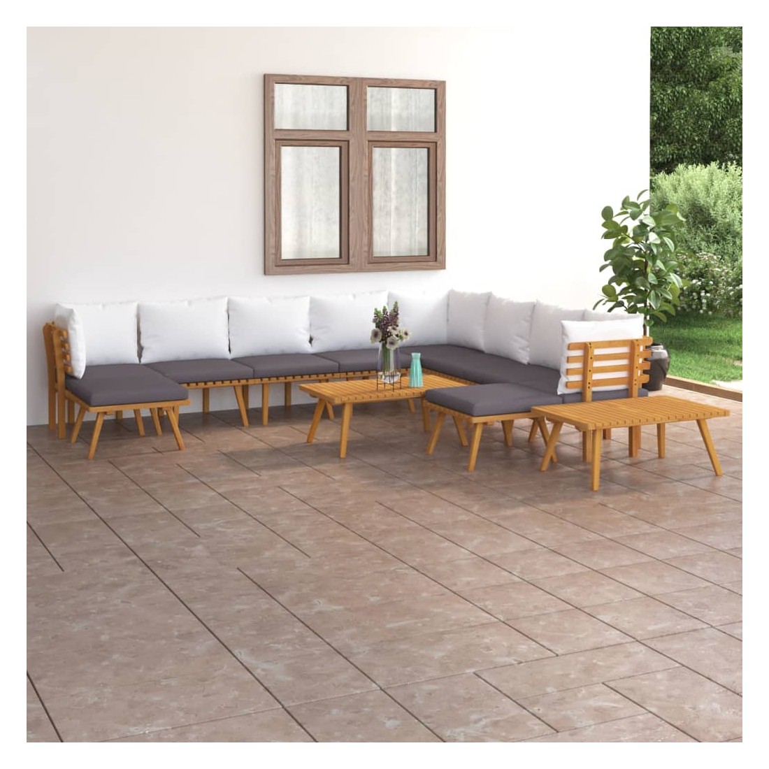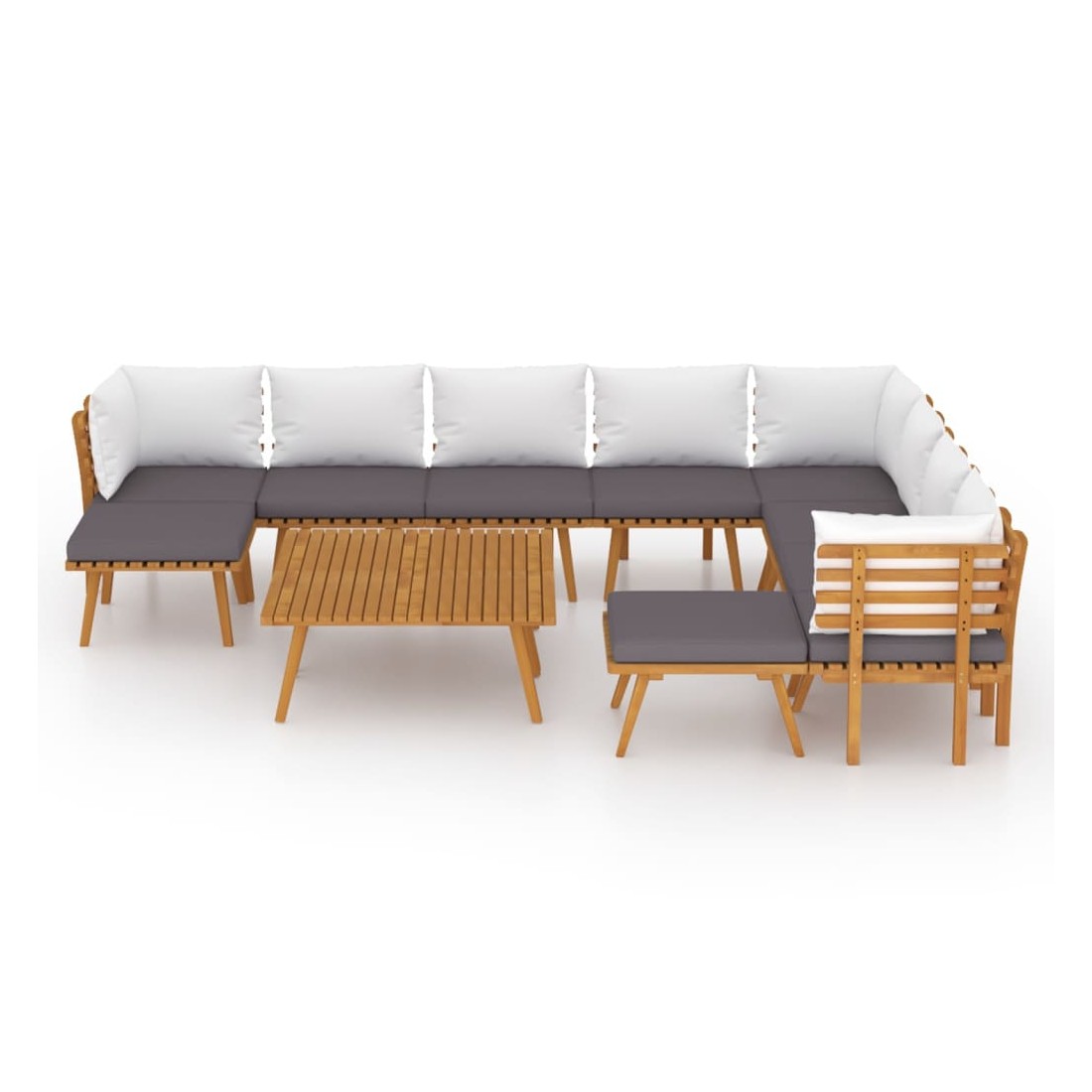 Ce salon de jardin en bois est un excellent choix pour vous détendre et profiter du beau temps, faire une sieste ou discuter avec votre famille ou vos amis. Avec un design à lattes intemporel, l’ensemble de salon en bois ajoute une touche de charme rustique à votre patio, terrasse ou jardin. Fabriqué en bois d'acacia massif, l'ensemble de mobilier d'extérieur est résistant aux intempéries et très durable. Combiné avec les coussins bien rembourrés, cet ensemble de salon de jardin offre le plus grand confort. Vous pouvez le combiner avec d'autres segments modulaires pour créer vos propres configurations d'ensemble de salon de jardin ! Remarque : afin de prolonger la durée de vie des meubles d'extérieur, nous vous recommandons de les protéger avec une housse imperméable.