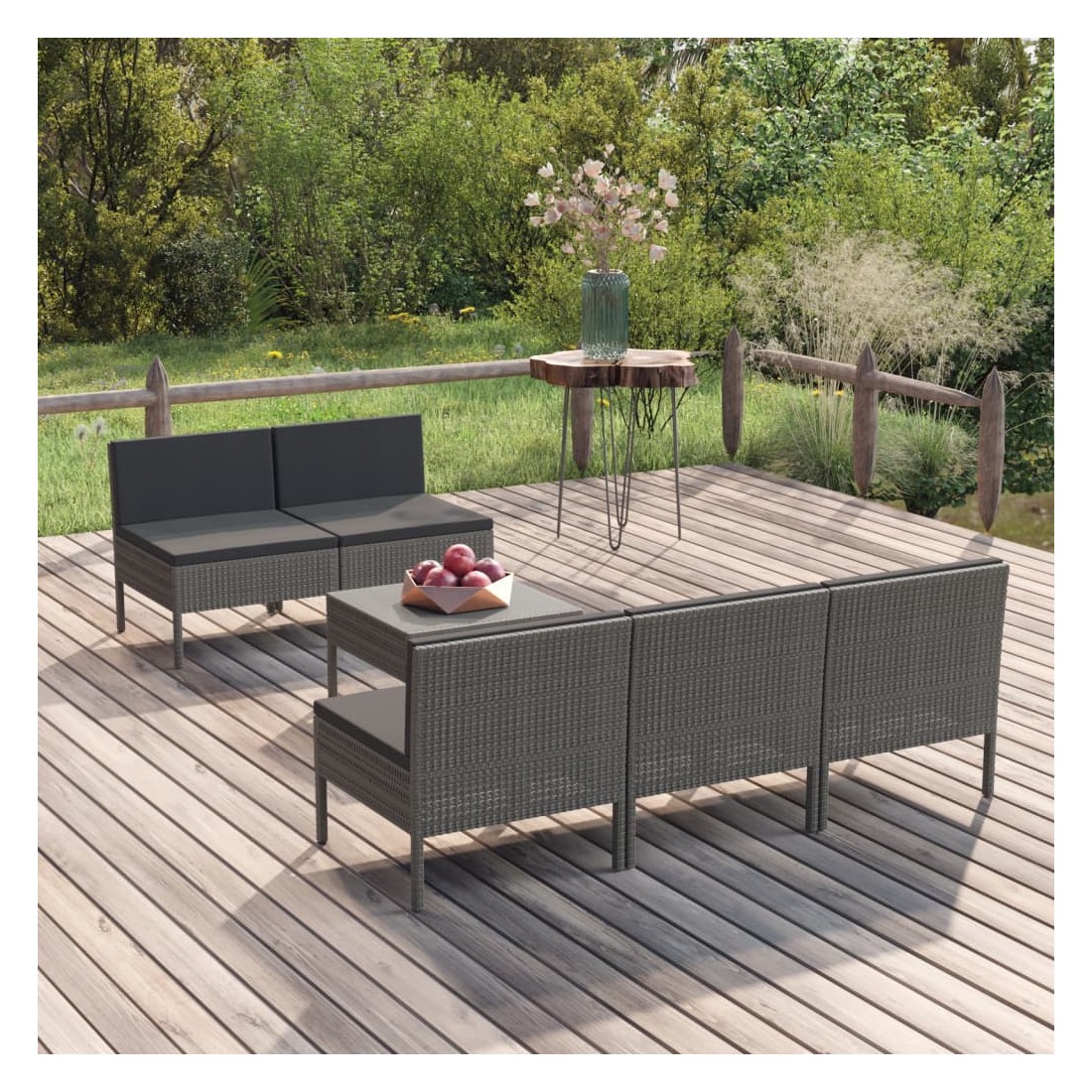 Créez un espace de détente attrayant et relaxant dont vous avez toujours rêvé avec ce salon de jardin. Vous pouvez profiter d’un après-midi ensoleillé ou d'une soirée d'été relaxante avec votre famille et vos amis grâce à cet ensemble de meubles de jardin ! Avec de la résine tressée résistante aux intempéries, l'ensemble de meubles d'extérieur est facile à nettoyer et à entretenir. Le cadre en acier enduit de poudre l'ensemble de salon de patio stable et solide. Équipé de coussins épais et moelleux, ce salon de jardin offrira un confort d’assise ultime. Les housses en polyester, faciles à nettoyer, peuvent être retirées et lavées. De plus, grâce à leur conception légère et modulaire, vous pouvez déplacer cet ensemble dans votre maison avec une grande facilité. Remarque : afin de prolonger la durée de vie des meubles d'extérieur, nous vous recommandons de les protéger avec une housse imperméable.
