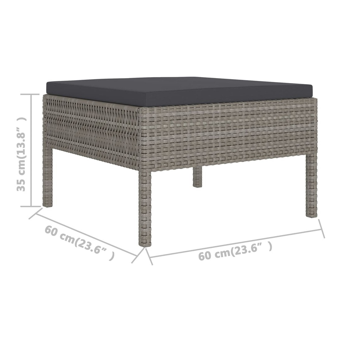 - Dimensions du repose-pied/de la table : 60 x 60 x 35 cm (L x l x H)