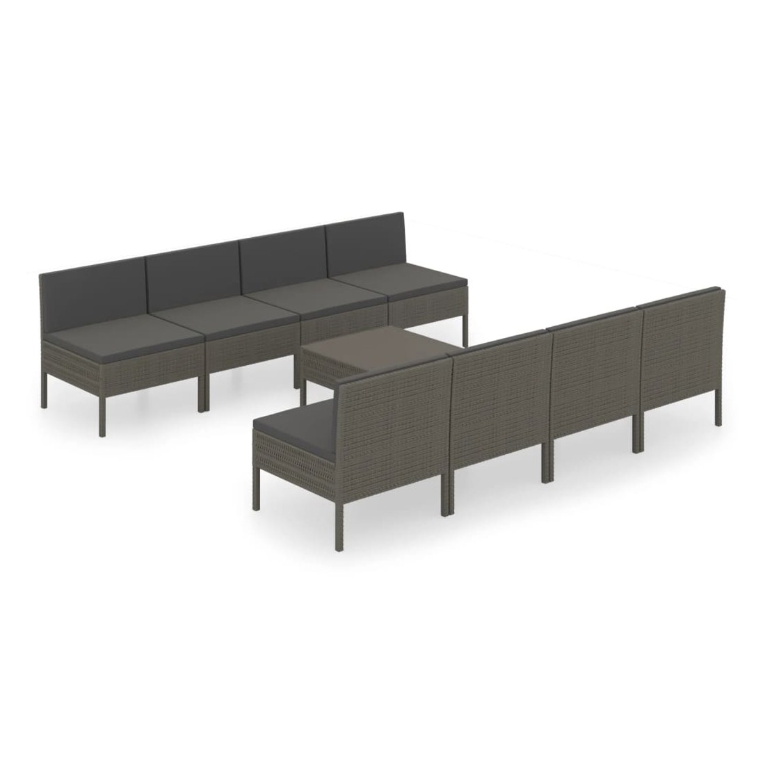 Salon de jardin 9 pcs avec coussins Résine tressée Gris