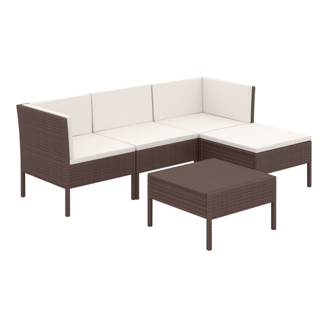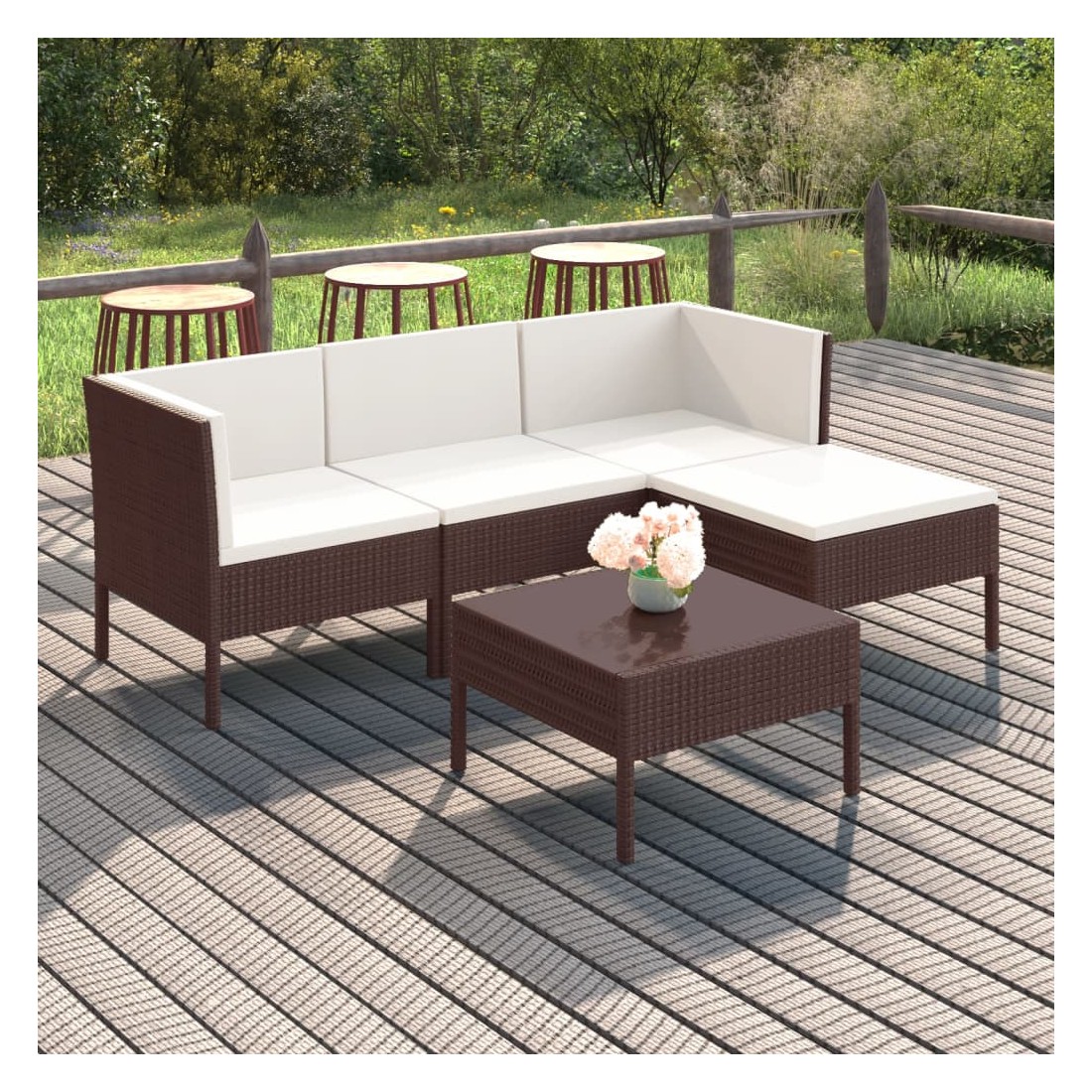 Salon de jardin 5 pcs avec coussins résine tressée marron