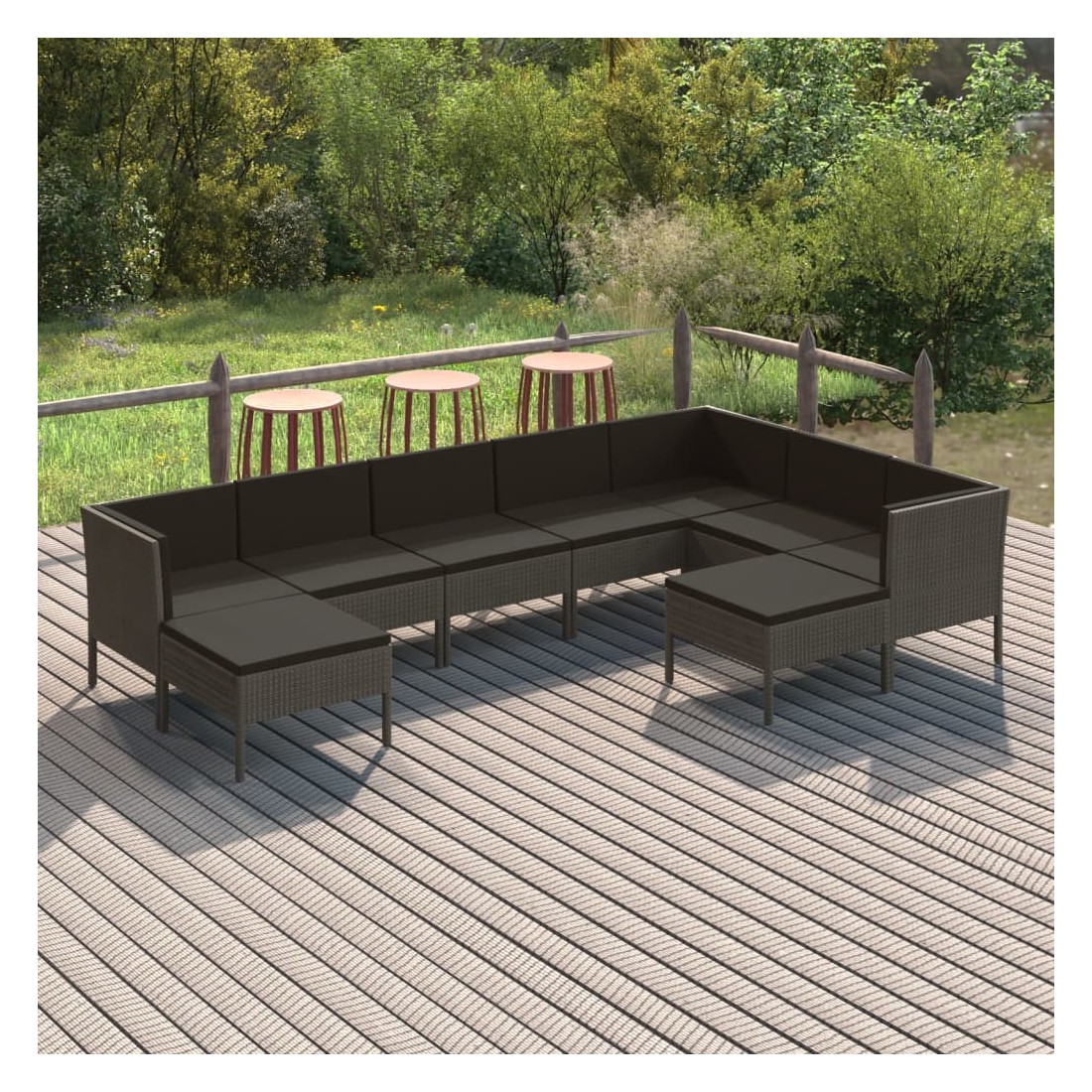 Créez un espace de détente attrayant et relaxant dont vous avez toujours rêvé avec ce salon de jardin. Vous pouvez profiter d’un après-midi ensoleillé ou d'une soirée d'été relaxante avec votre famille et vos amis grâce à cet ensemble de meubles de jardin ! Avec de la résine tressée résistante aux intempéries, l'ensemble de meubles d'extérieur est facile à nettoyer et à entretenir. Le cadre en acier enduit de poudre l'ensemble de salon de patio stable et solide. Équipé de coussins épais et moelleux, ce salon de jardin offrira un confort d’assise ultime. Les housses en polyester, faciles à nettoyer, peuvent être retirées et lavées. De plus, grâce à leur conception légère et modulaire, vous pouvez déplacer cet ensemble dans votre maison avec une grande facilité. Remarque : afin de prolonger la durée de vie des meubles d'extérieur, nous vous recommandons de les protéger avec une housse imperméable.