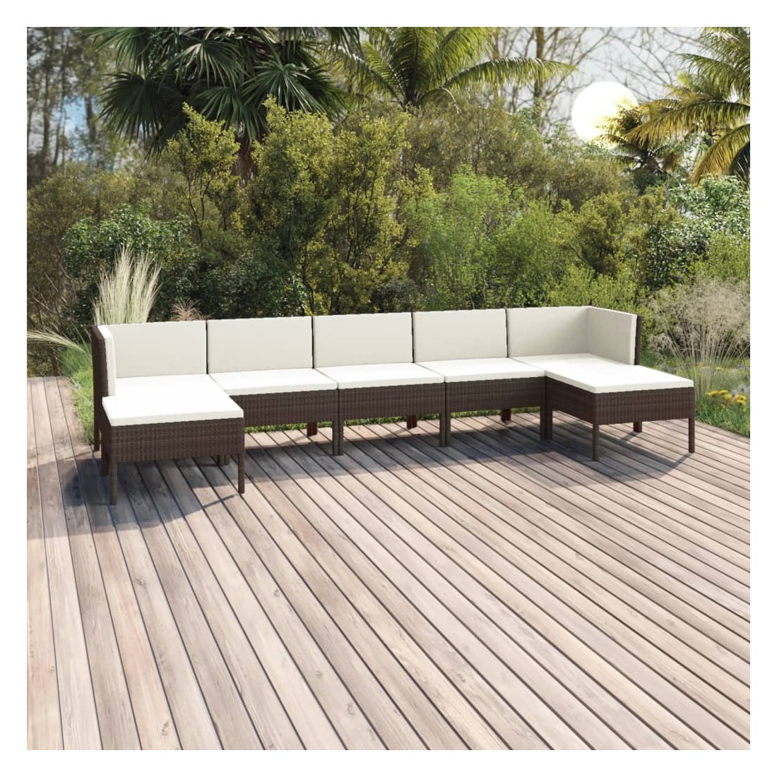 Salon de jardin 7 pcs avec coussins Résine tressée Marron
