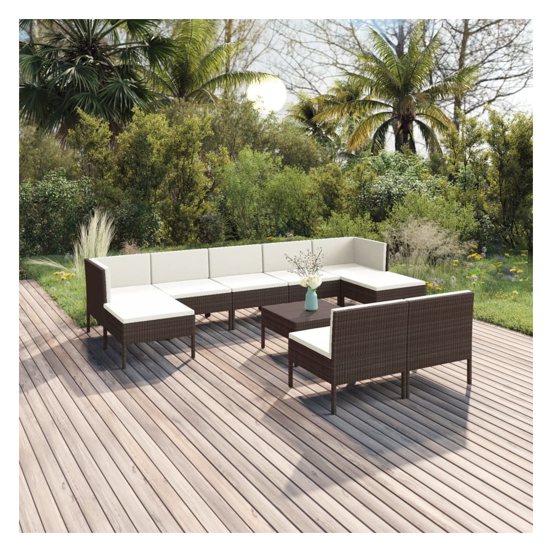 Salon de jardin 10 pcs avec coussins Résine tressée Marron