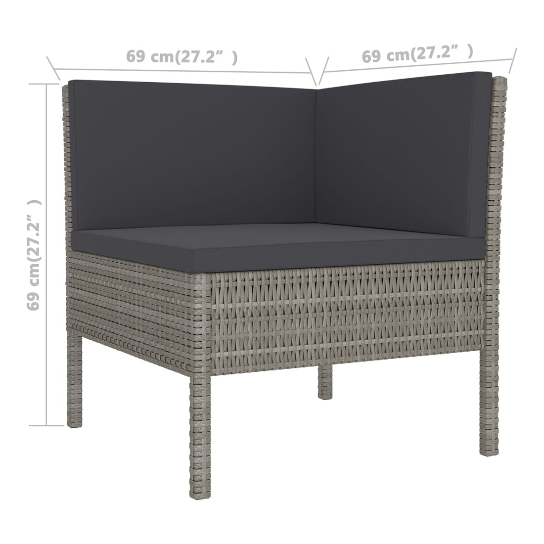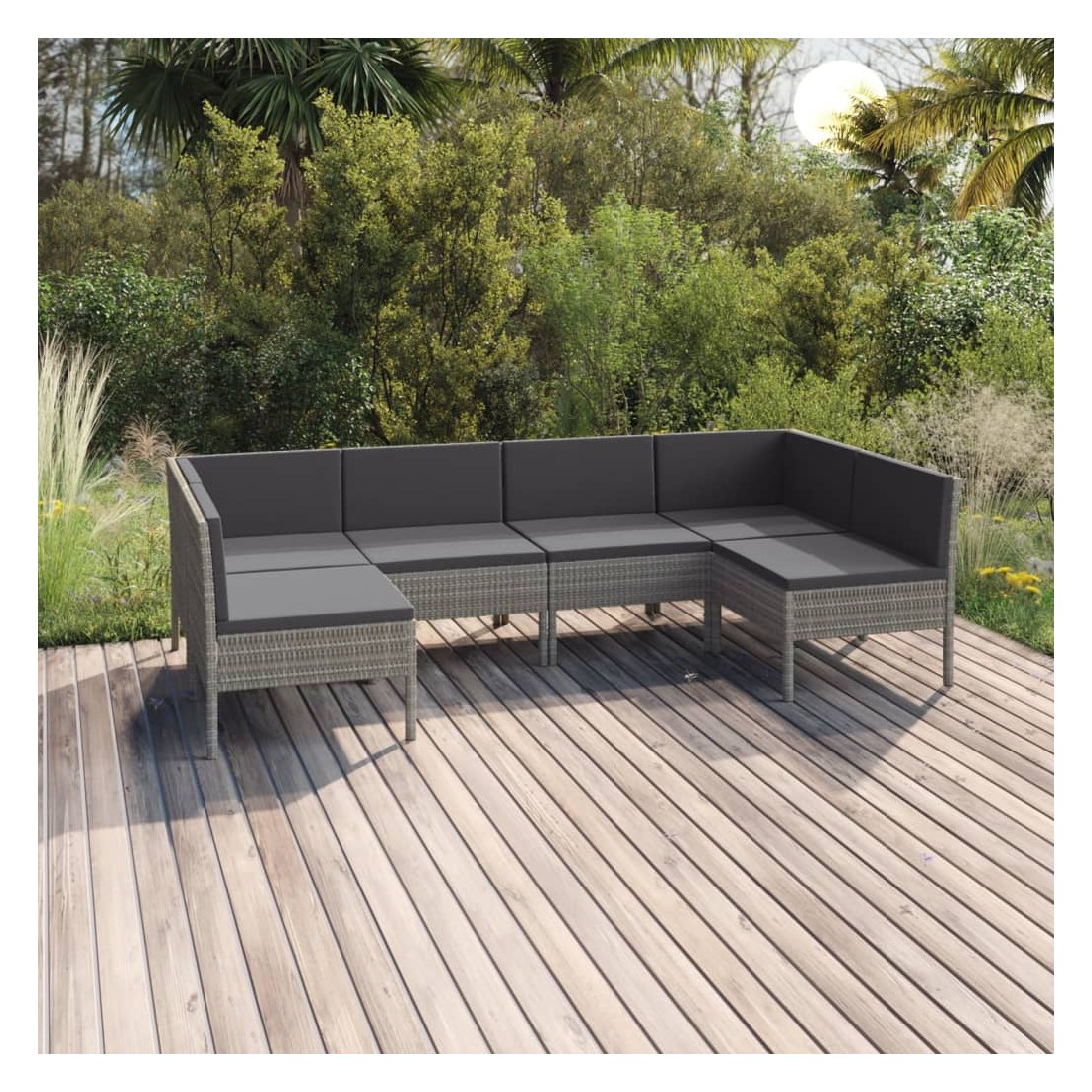 Salon de jardin 6 pcs avec coussins résine tressée gris