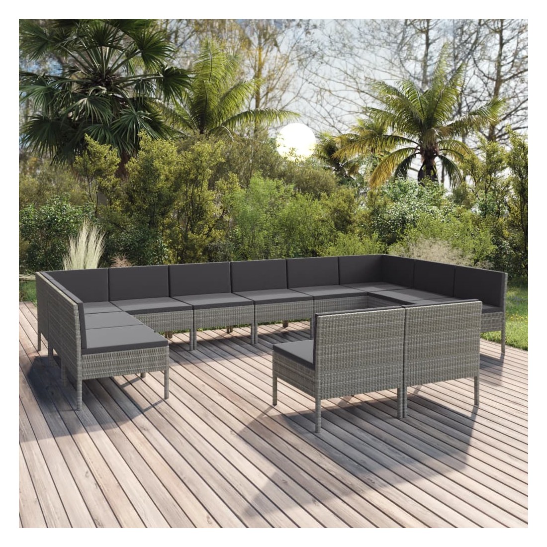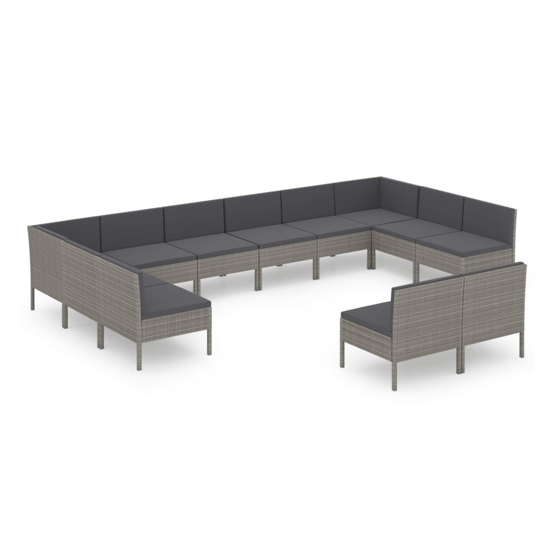 Salon de jardin 12 pcs avec coussins Résine tressée Gris