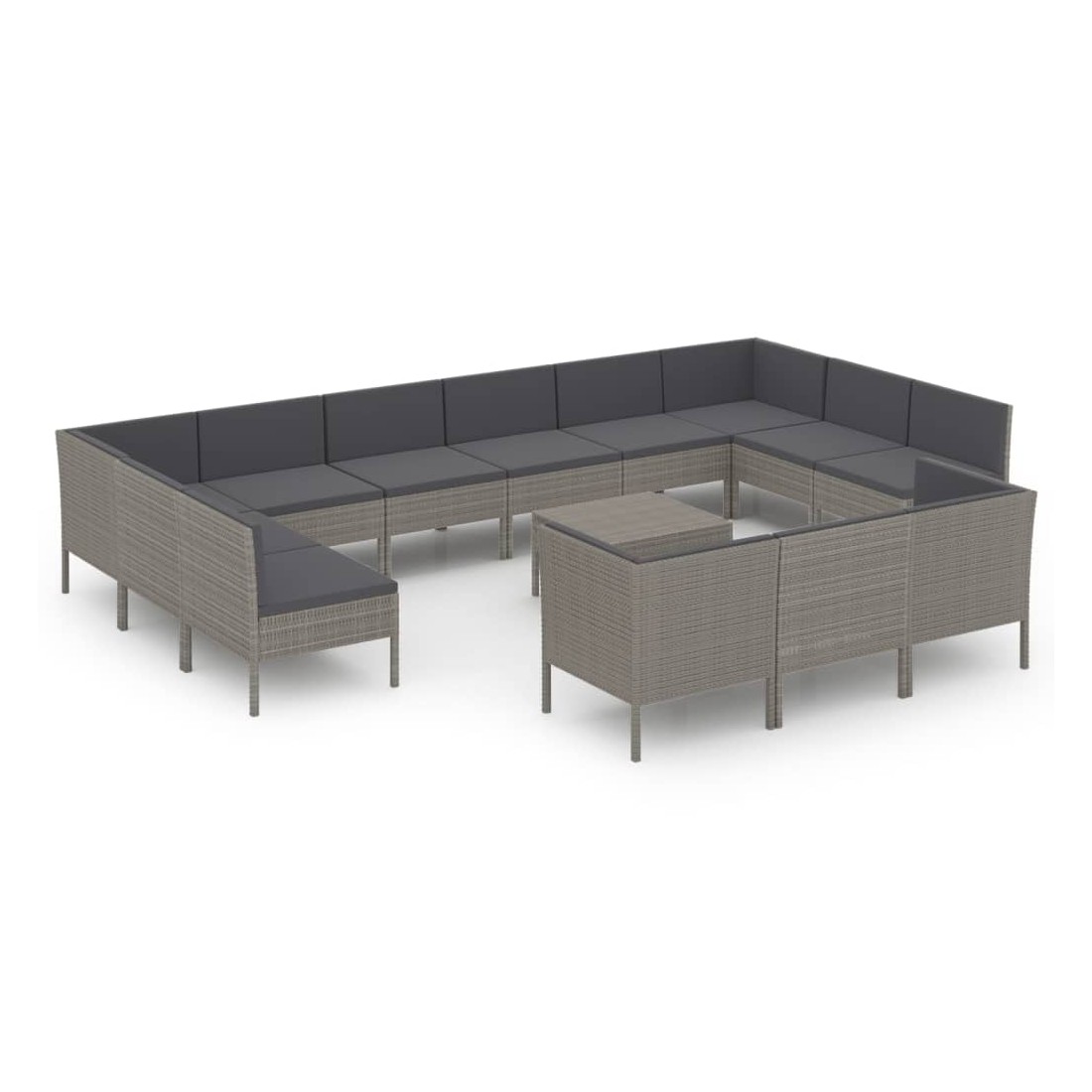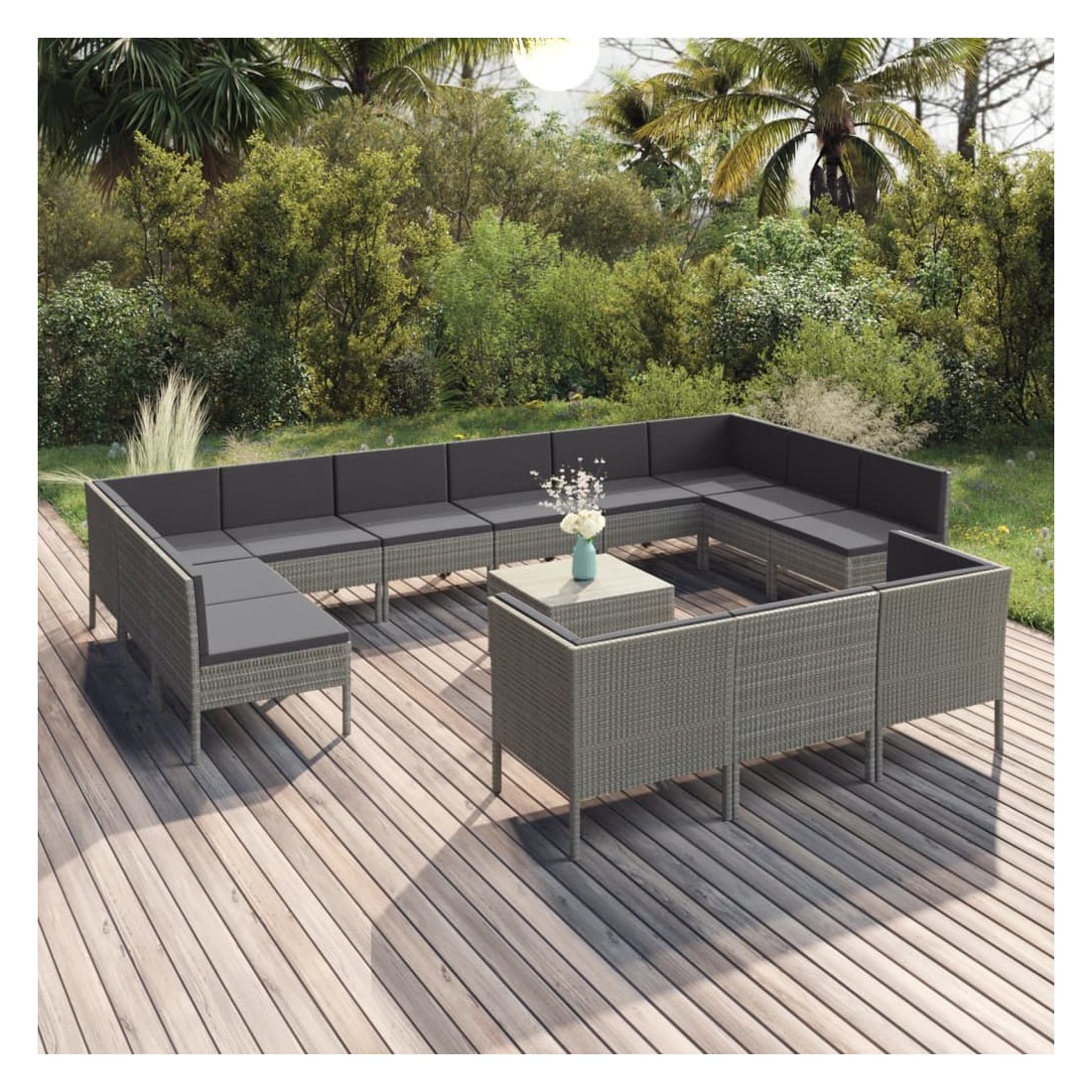 Salon de jardin 14 pcs avec coussins Résine tressée Gris