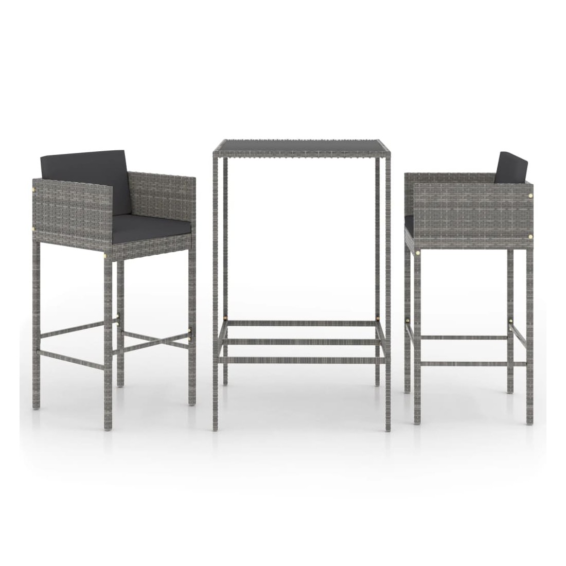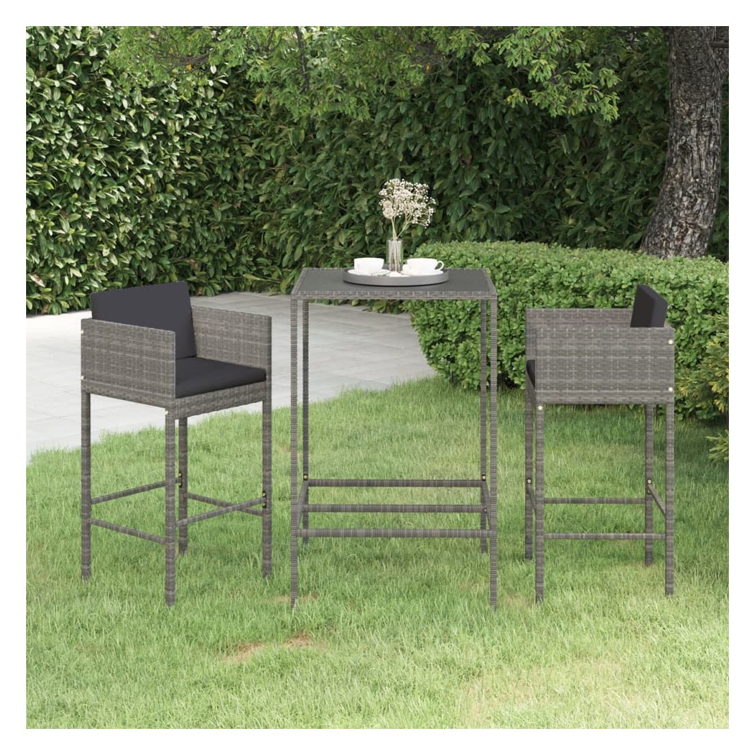 Ensemble de bar de jardin 3 pcs et coussins Résine tressée Gris