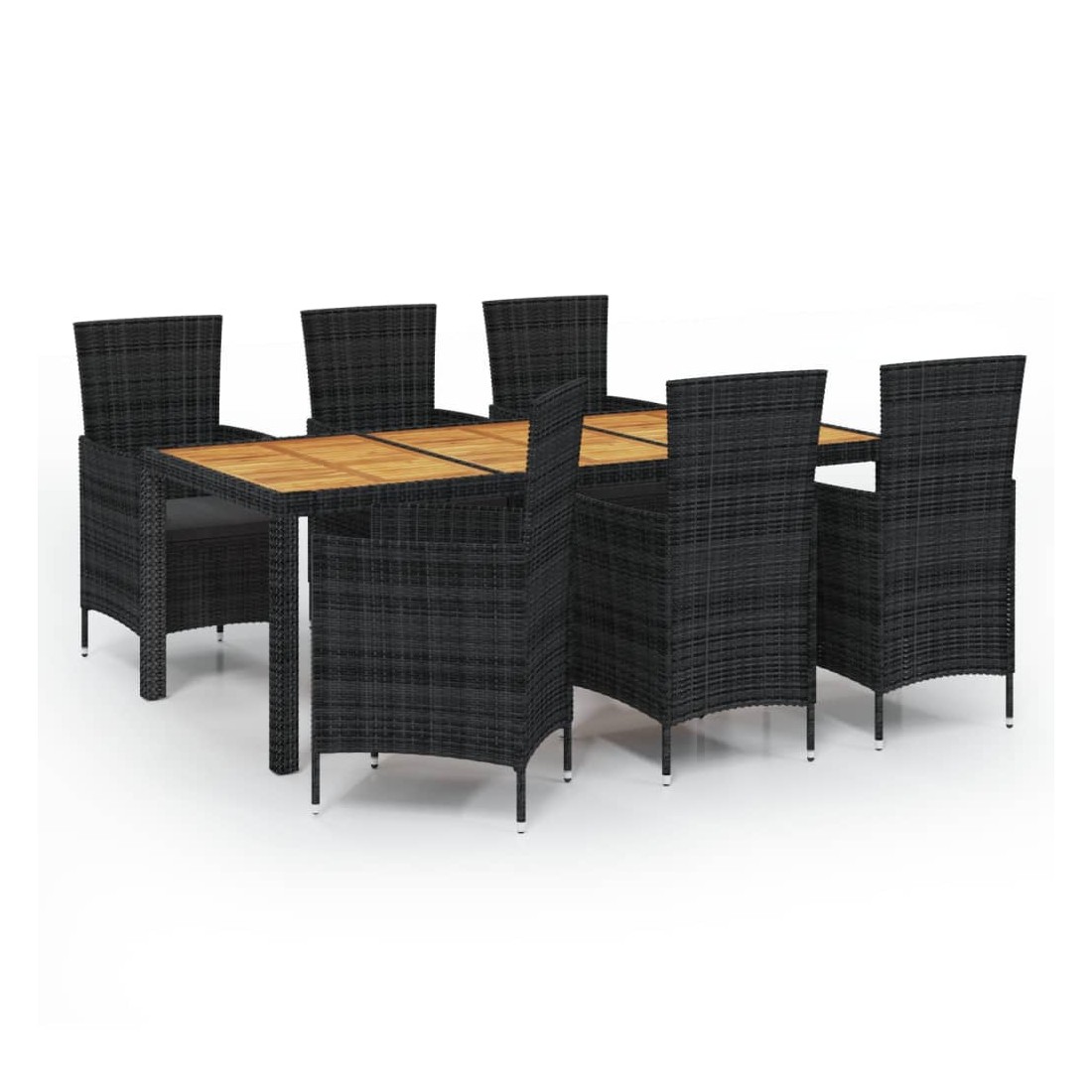 Salon de jardin 7 pcs avec coussins résine tressée noir