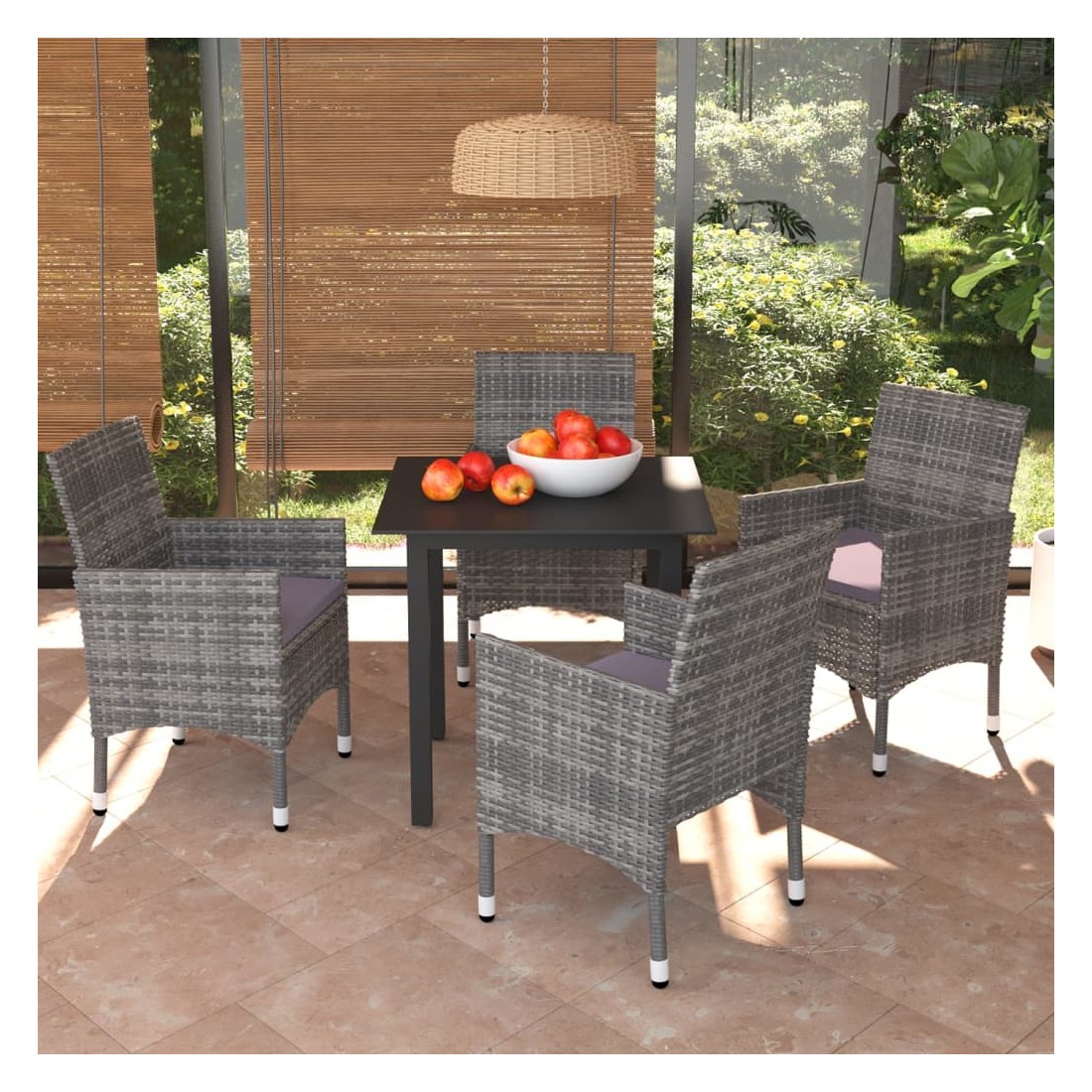 Ensemble à manger de jardin coussins 5pcs Résine tressée Gris