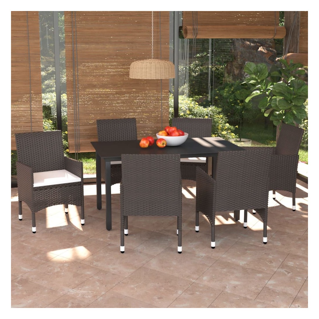 Ensemble à manger de jardin et coussins 7 pcs marron poly rotin