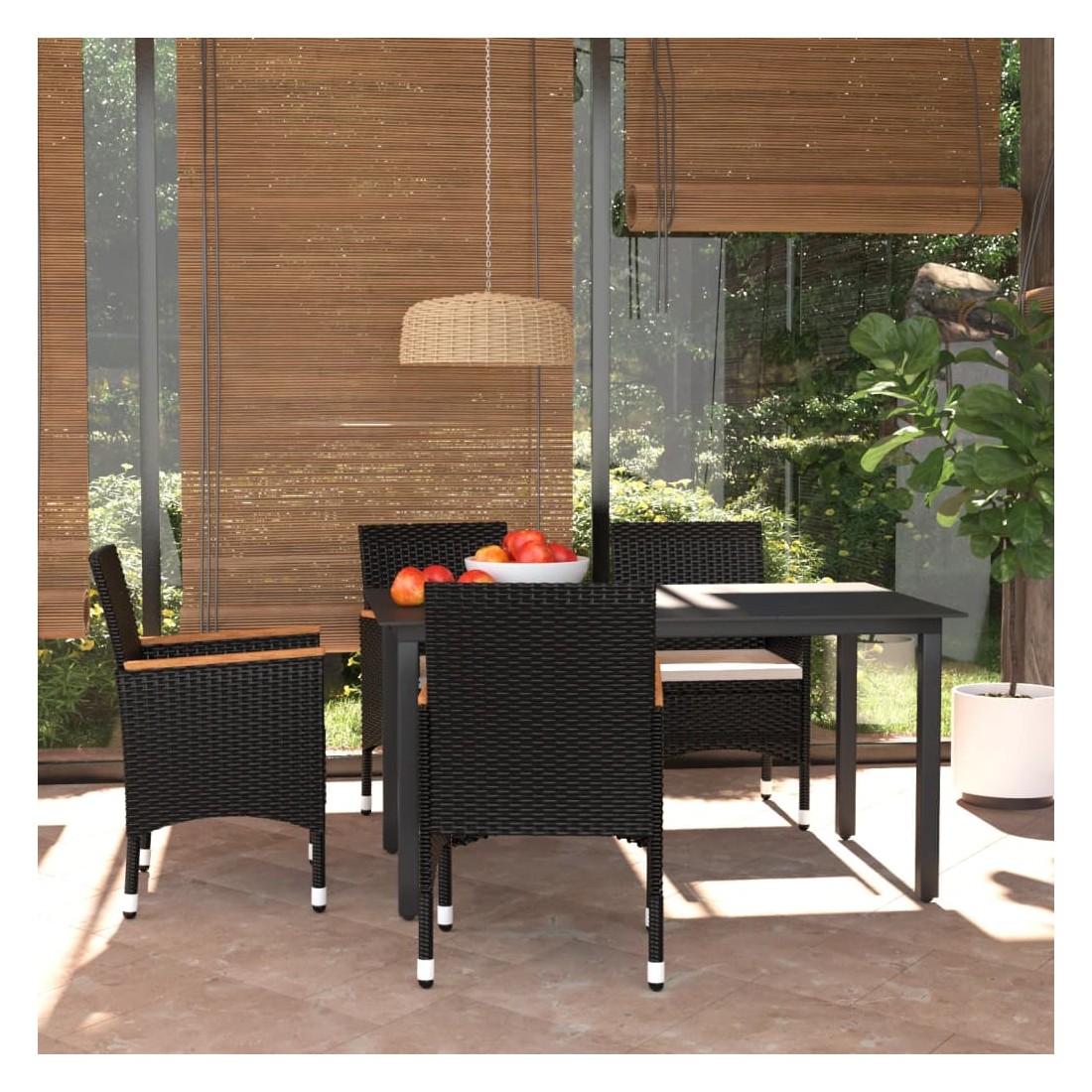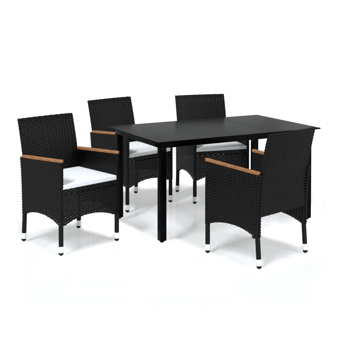 Ensemble à dîner de jardin avec coussins 5 pcs poly rotin noir
