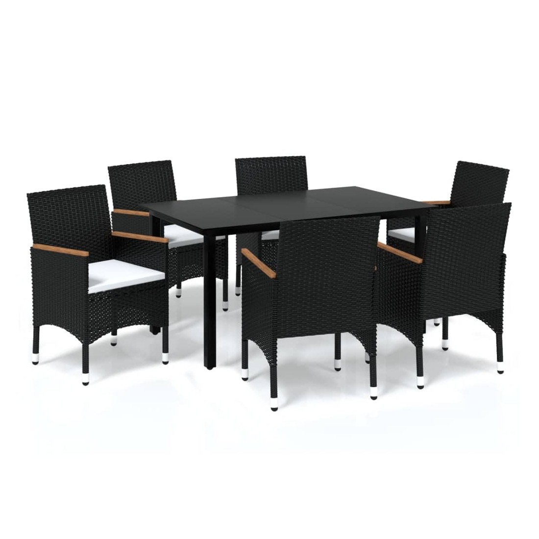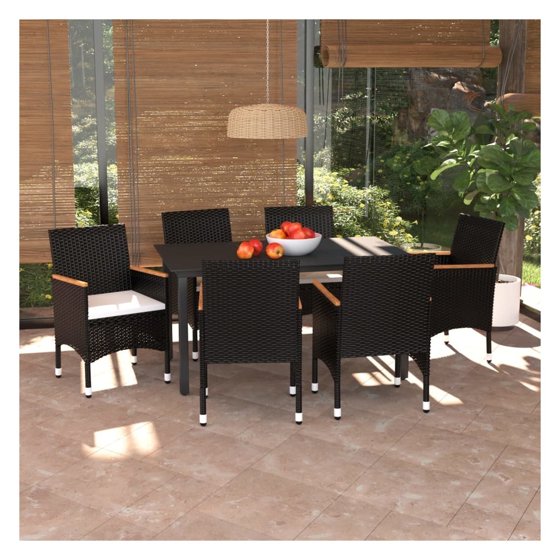 Ensemble à manger de jardin coussins 7pcs Résine tressée Noir