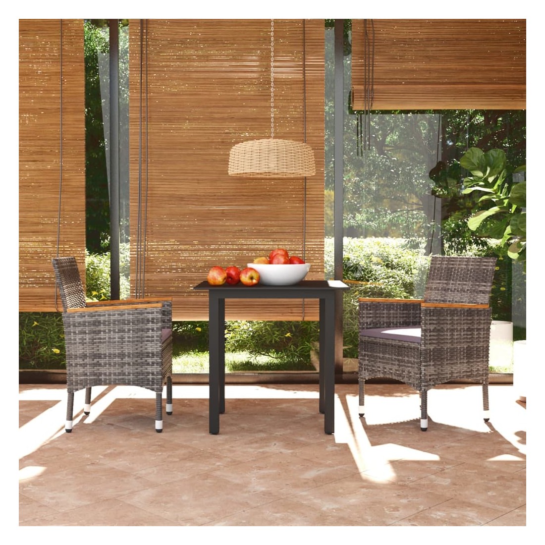 Cet ensemble de salle à manger de jardin est une combinaison parfaite de style et de fonctionnalité et est destiné à être le point de mire de votre jardin, balcon ou patio. Avec un cadre en acier robuste enveloppé de résine tressée résistante aux intempéries, les chaises de jardin sont à l'épreuve de la rouille et de la moisissure, offrant des années de détente de qualité. Les accoudoirs sont joliment décorés avec du bois d'acacia massif avec une finition à l'huile naturelle, ce qui apporte un sentiment de charme rustique. La table d'extérieur présente un dessus de table en verre aux lignes simples, facile à nettoyer et adapté à une utilisation à l'extérieur. Le cadre en aluminium assure également la stabilité et la robustesse. De plus, les coussins bien rembourrés offrent un confort ultime pendant votre temps assis. Cet ensemble de salle à manger de patio est facile à déplacer grâce à sa construction légère. Remarque : afin de prolonger la durée de vie des meubles d'extérieur, nous vous recommandons de les protéger avec une housse imperméable.