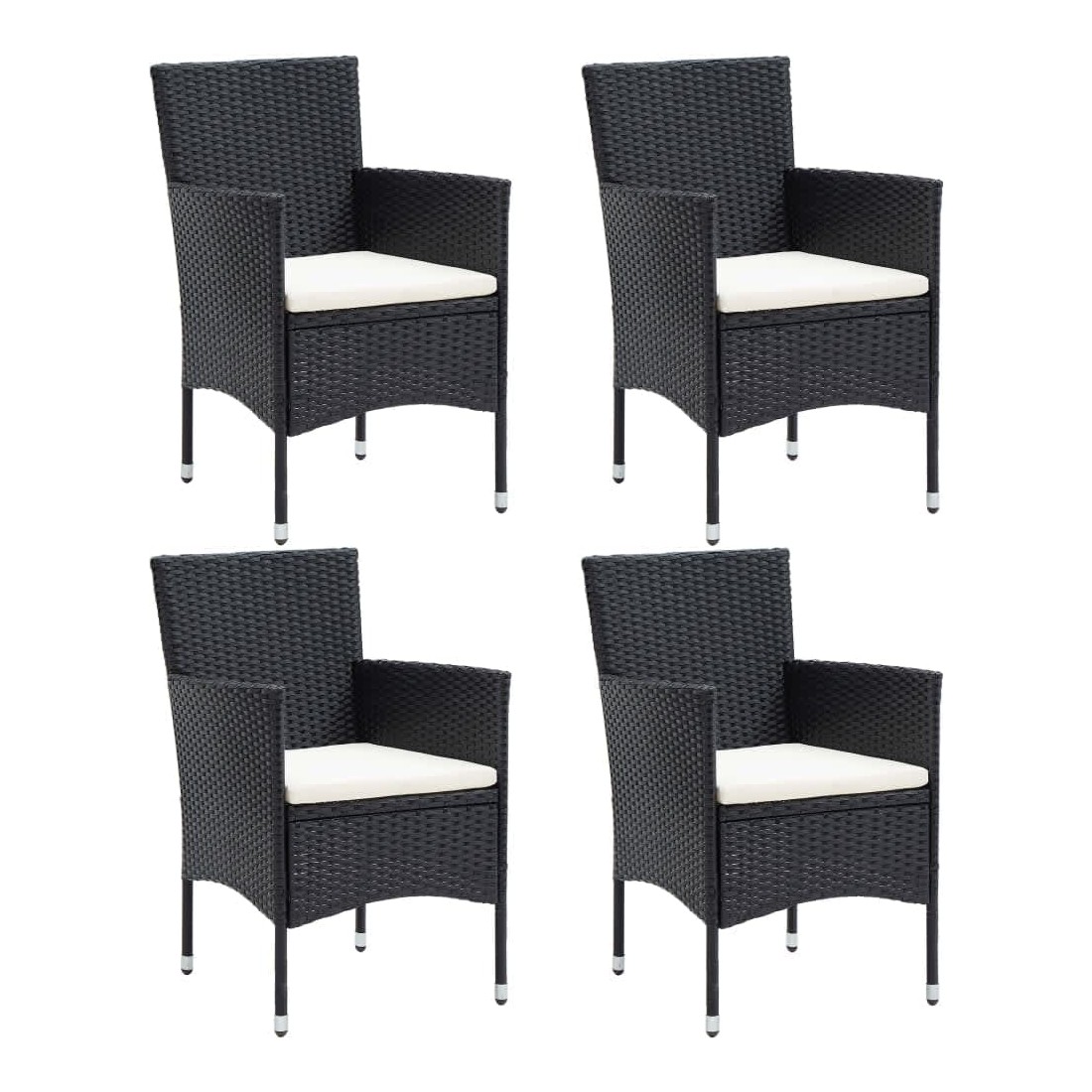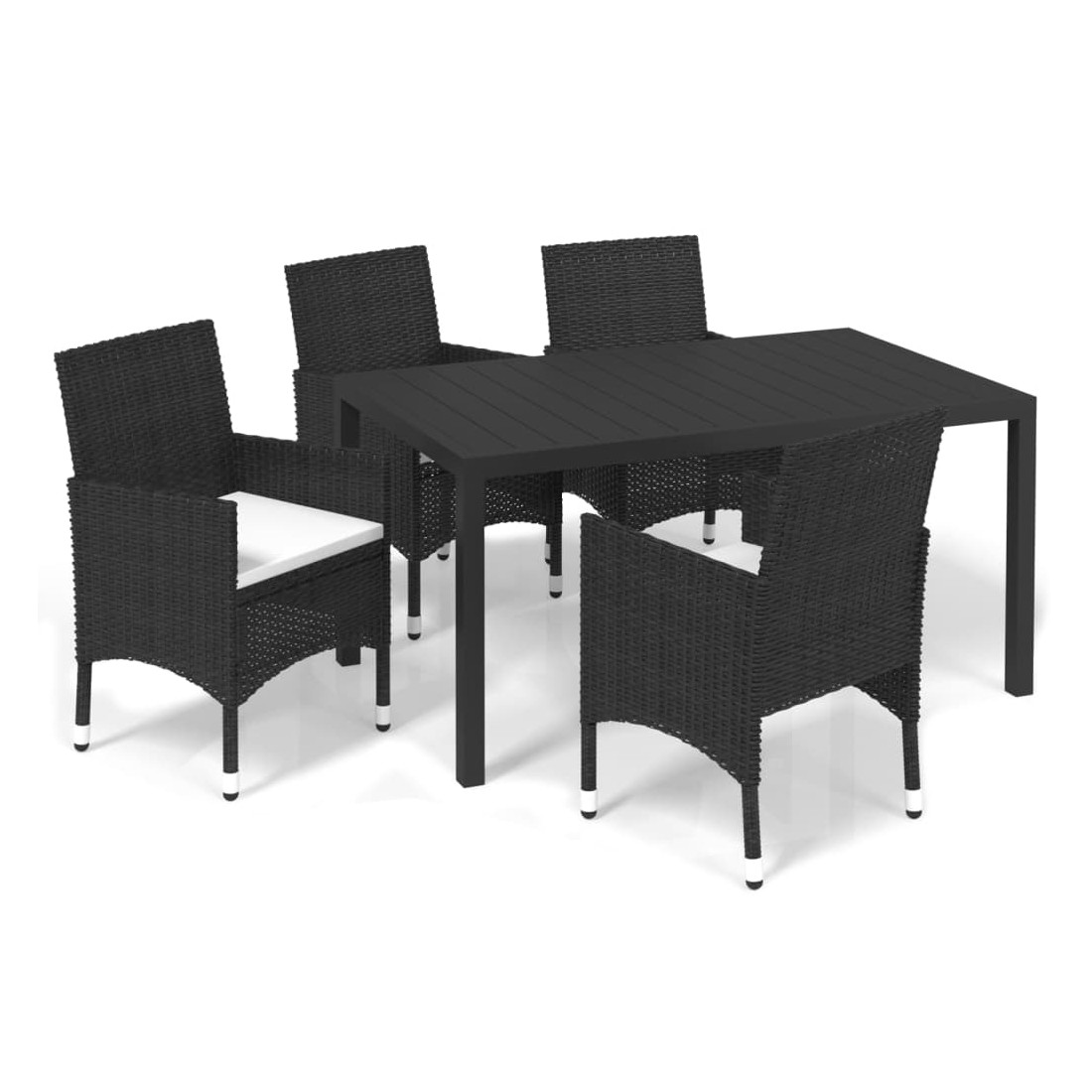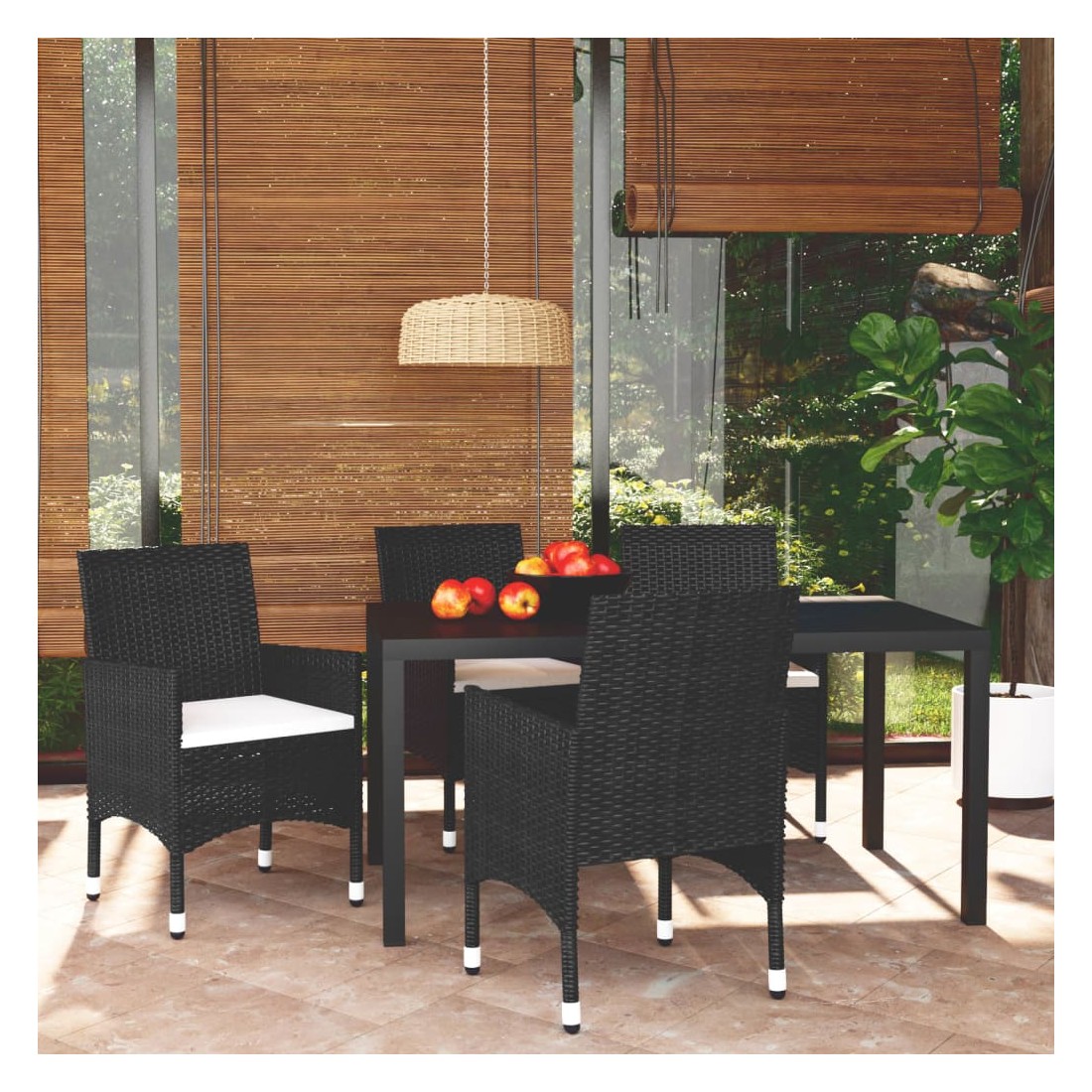 Ensemble à dîner de jardin avec coussins 5 pcs poly rotin noir