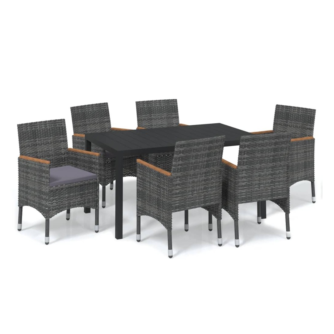 Cet ensemble de salle à manger de jardin est une combinaison parfaite de style et de fonctionnalité et est destiné à être le point de mire de votre jardin, balcon ou patio. Avec un cadre en acier robuste enveloppé de résine tressée résistante aux intempéries, les chaises de jardin sont à l'épreuve de la rouille et de la moisissure, offrant des années de détente de qualité. Les accoudoirs sont joliment décorés avec du bois d'acacia massif avec une finition à l'huile naturelle, ce qui apporte un sentiment de charme rustique. La table d'extérieur présente un dessus de table en WPC, facile à nettoyer et adapté à une utilisation à l'extérieur. Le cadre en aluminium assure également la stabilité et la robustesse. De plus, les coussins bien rembourrés offrent un confort ultime pendant votre temps assis. Cet ensemble de salle à manger de patio est facile à déplacer grâce à sa construction légère. Remarque : afin de prolonger la durée de vie des meubles d'extérieur, nous vous recommandons de les protéger avec une housse imperméable.