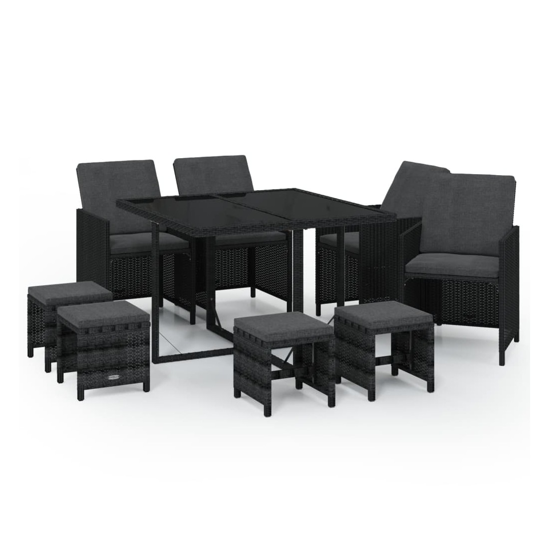 Ensemble à manger de jardin coussins 9pcs Résine tressée Noir