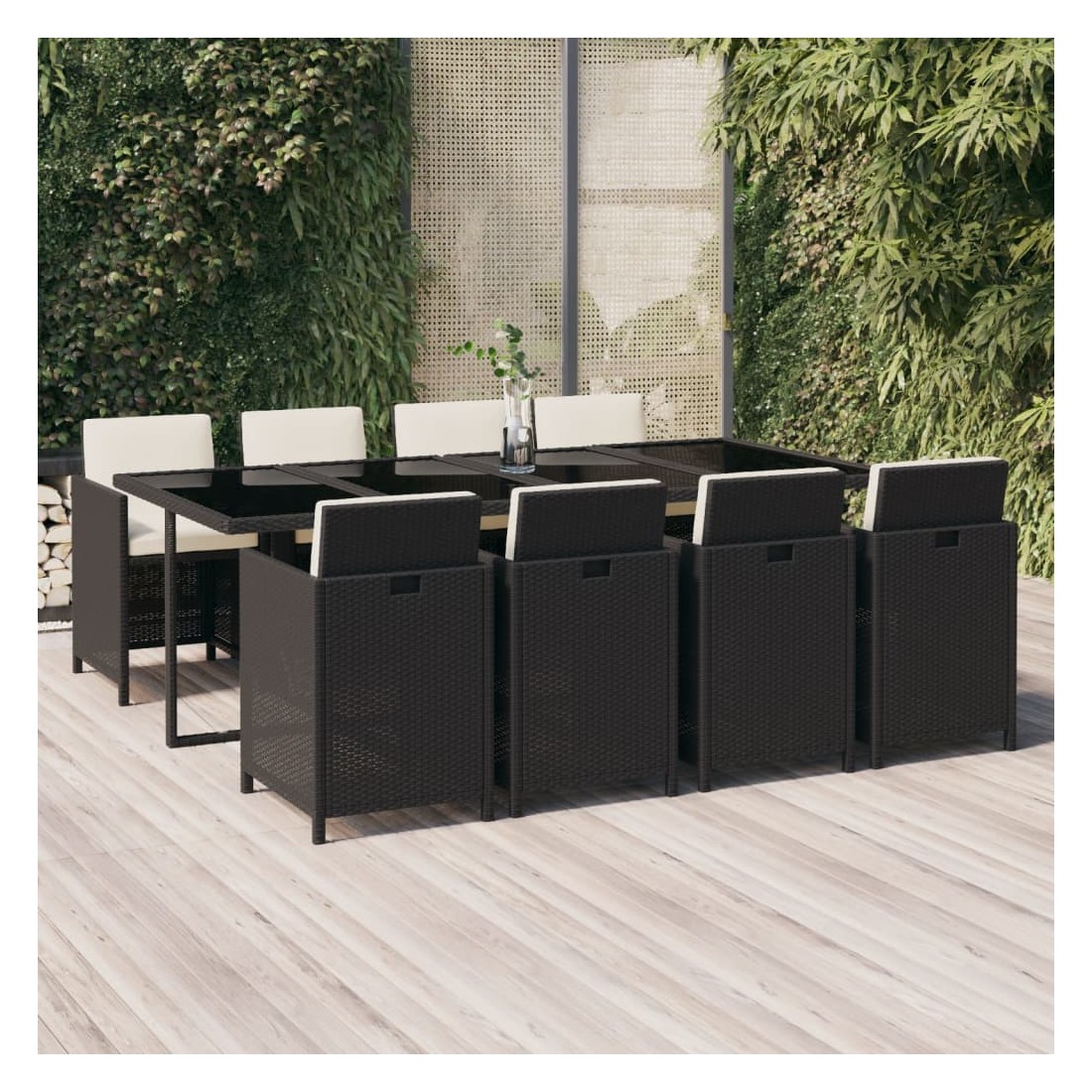 L'ensemble de salle à manger de jardin classique, au design élégant et contemporain, est un excellent choix pour manger et vous détendre dans votre jardin. Convient à un usage extérieur : fabriqué en résine tressée résistante aux intempéries et à l'eau, cet ensemble repas d'extérieur est facile à nettoyer, résistant à l'usure et convient à un usage quotidien. Cadre robuste : le cadre en acier enduit de poudre rend l'ensemble de salle à manger de patio robuste et durable. Expérience confortable : les coussins de siège et de dossier épais, doux et remplis de mousse ajoutent également un confort d'assise supplémentaire. Design flexible : vous pouvez tirer le dossier vers le bas et ranger les chaises sous la table, économisant ainsi un espace de rangement précieux lorsque l'ensemble n'est pas utilisé. Grâce à sa conception légère, tous les articles sont faciles à déplacer. Remarque :Afin de prolonger la durée de vie de votre mobilier d'extérieur, nous vous recommandons de le protéger avec une housse imperméable.