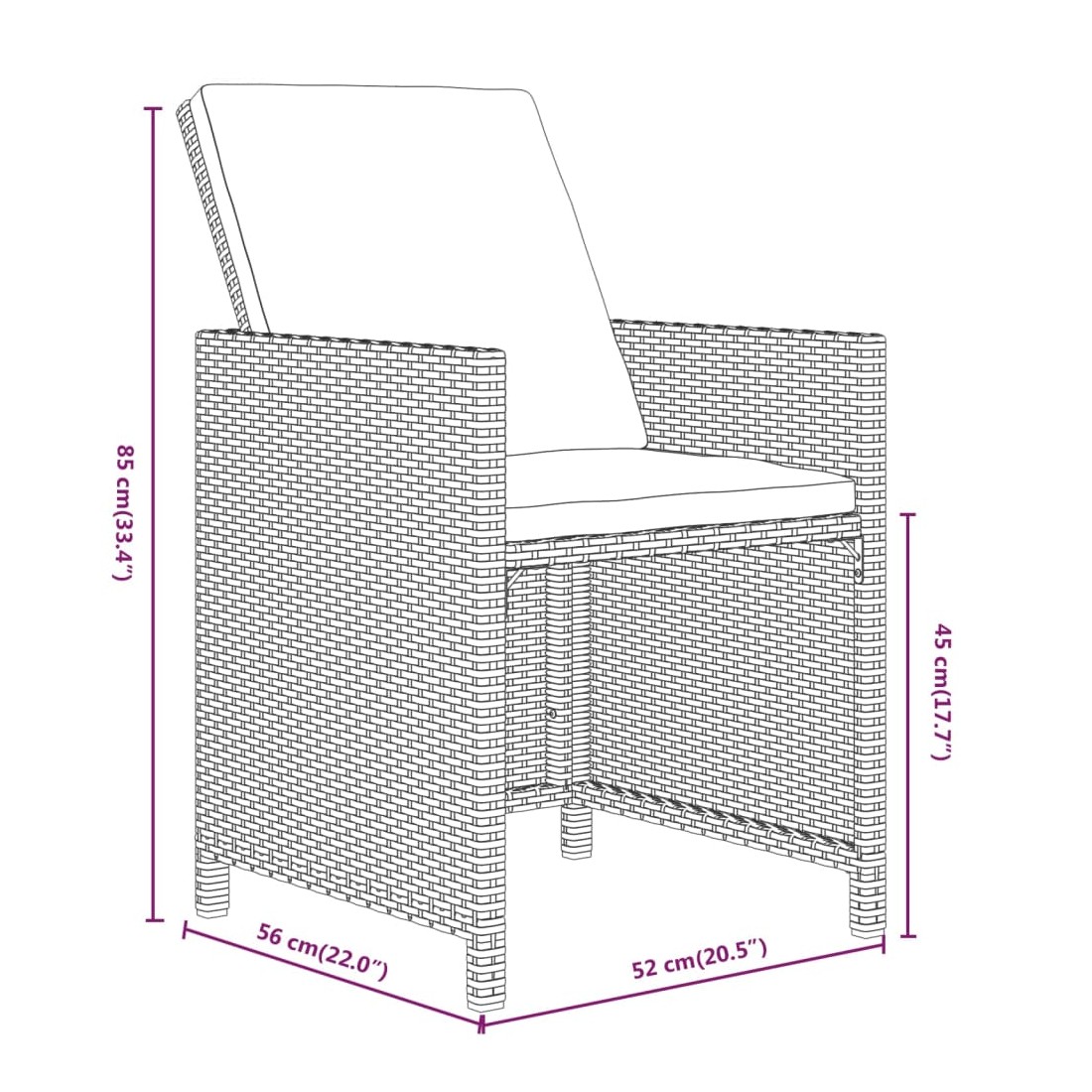 - Dimensions de la chaise : 52 x 56 x 85 cm (l x P x H)