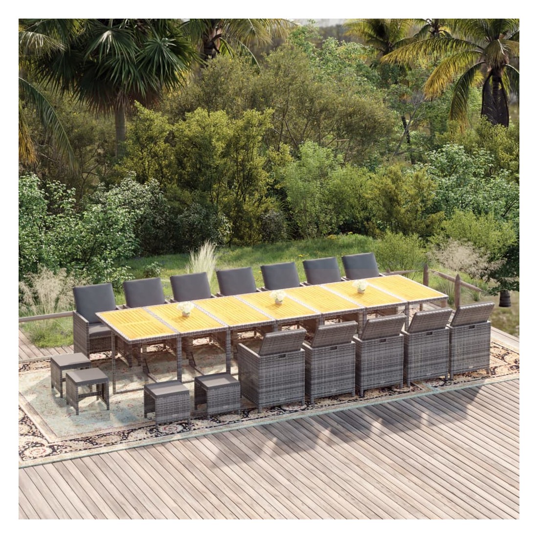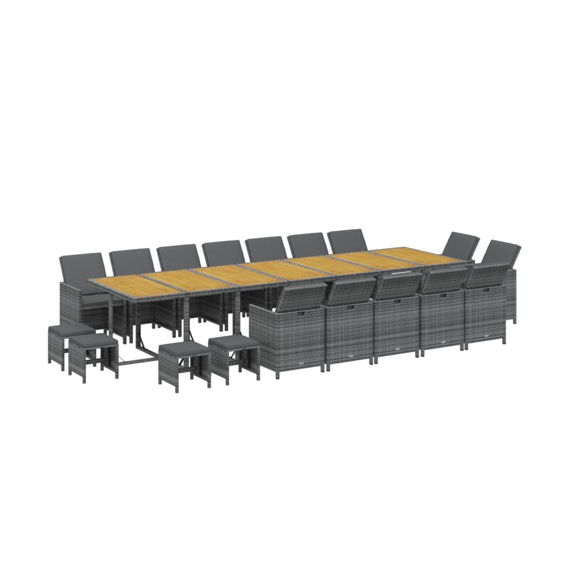 Ensemble à manger de jardin coussins 19 pcs Gris Résine tressée