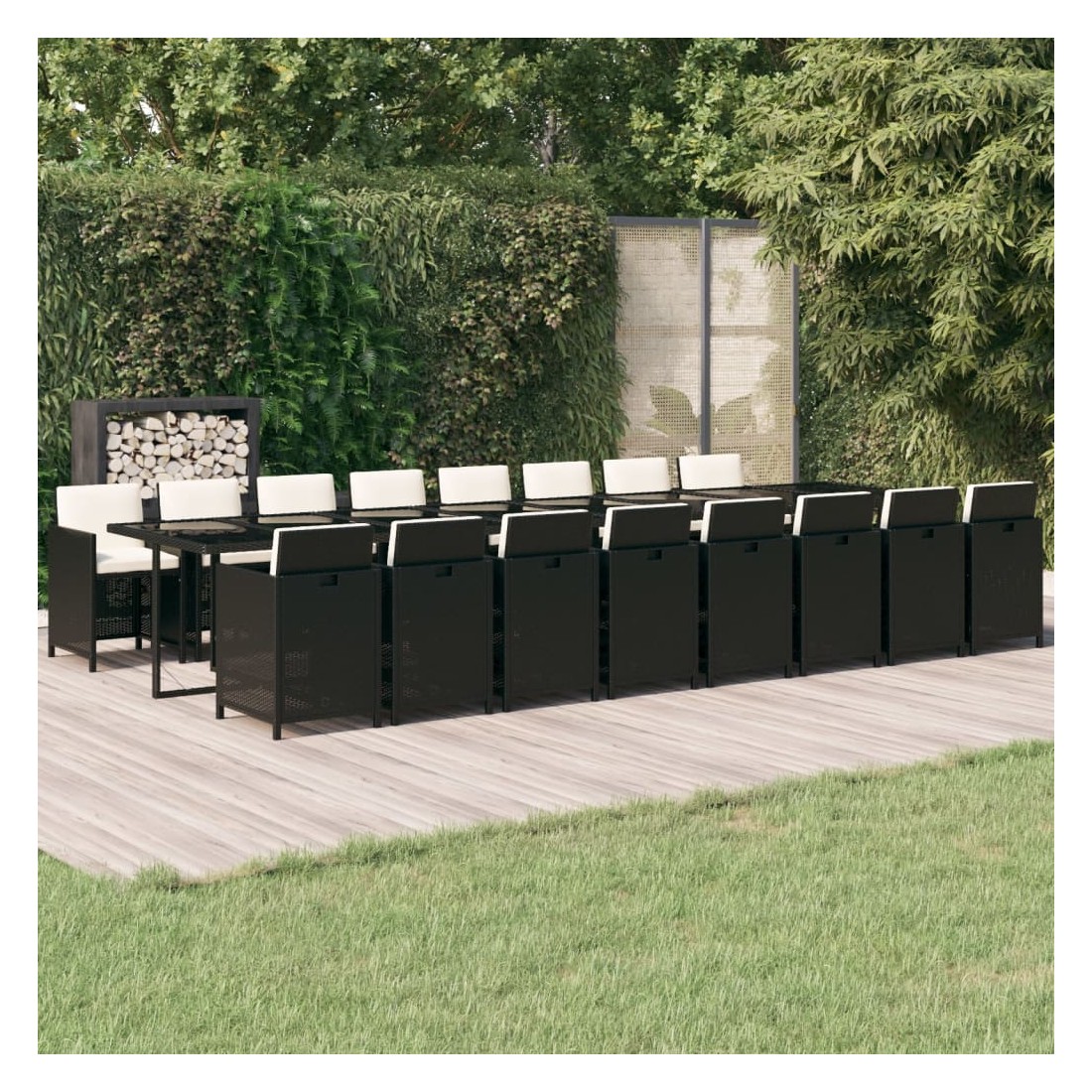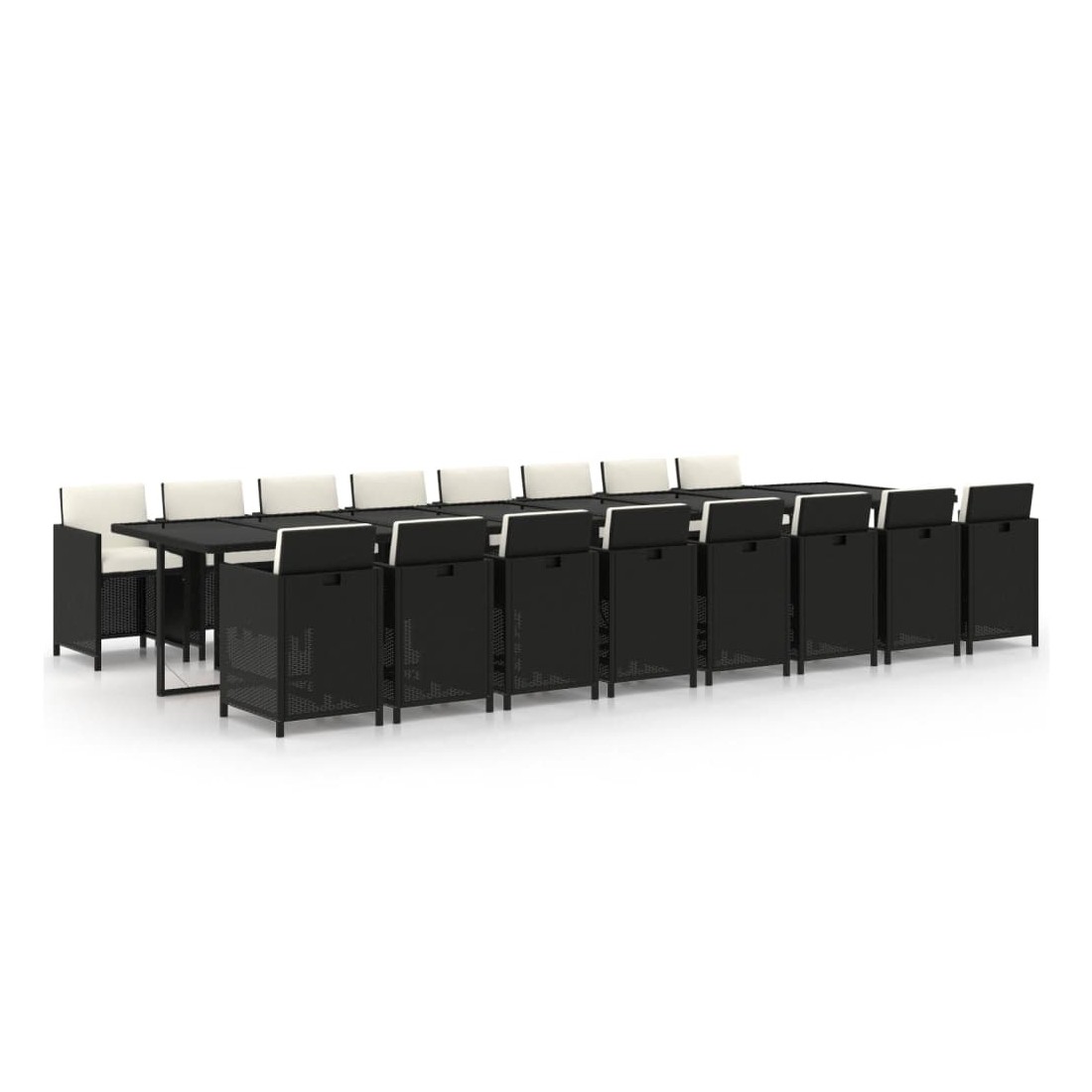 Ensemble à manger de jardin 17 pcs coussins noir résine tressée