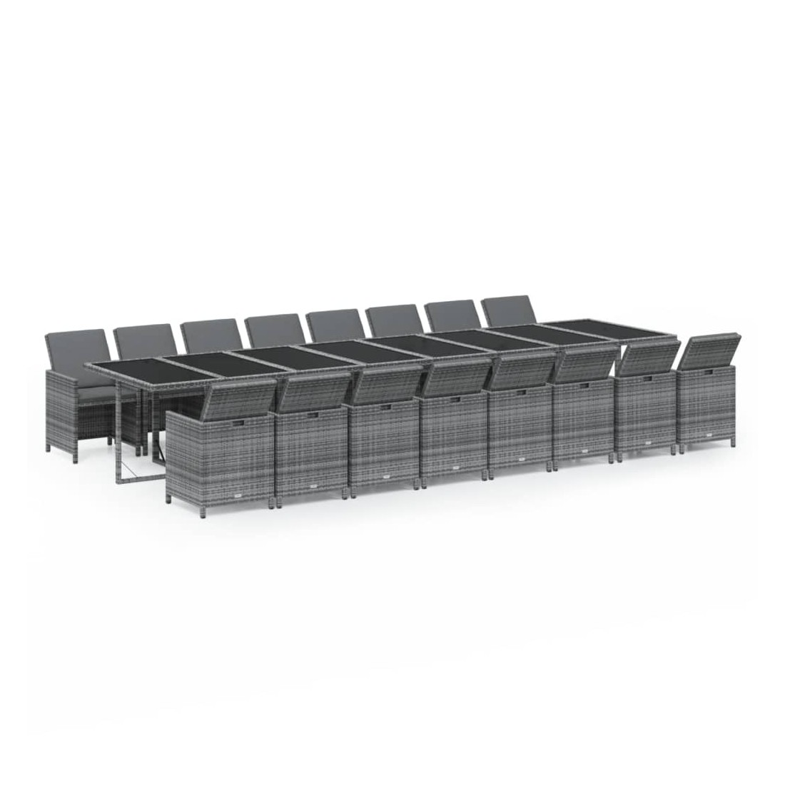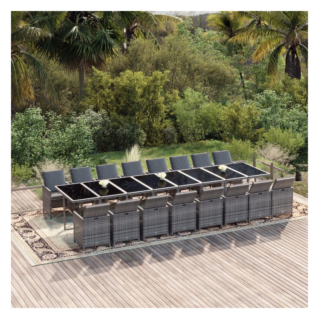Cet ensemble de salle à manger de jardin en résine tressée, au design élégant et unique, est un excellent choix pour manger et vous détendre dans votre espace de vie extérieur. Matériau pratique : enveloppé de résine tressée résistante aux intempéries, cet ensemble de salle à manger d'extérieur est facile à nettoyer et résistant à l'usure, offrant des années de détente de qualité.Structure stable et solide : les cadres en acier de la table et des chaises de jardin assurent robustesse et stabilité.Chaises flexibles : vous pouvez abaisser les dossiers et ranger les chaises d'extérieur sous la table, ce qui permet d'économiser un espace de stockage précieux lorsque l'ensemble n'est pas utilisé.Expérience confortable : les coussins de siège et de dossier épais, doux et remplis de mousse ajoutent également un confort d'assise supplémentaire. Remarque :Afin de prolonger la durée de vie de votre mobilier d'extérieur, nous vous recommandons de le protéger avec une housse imperméable.