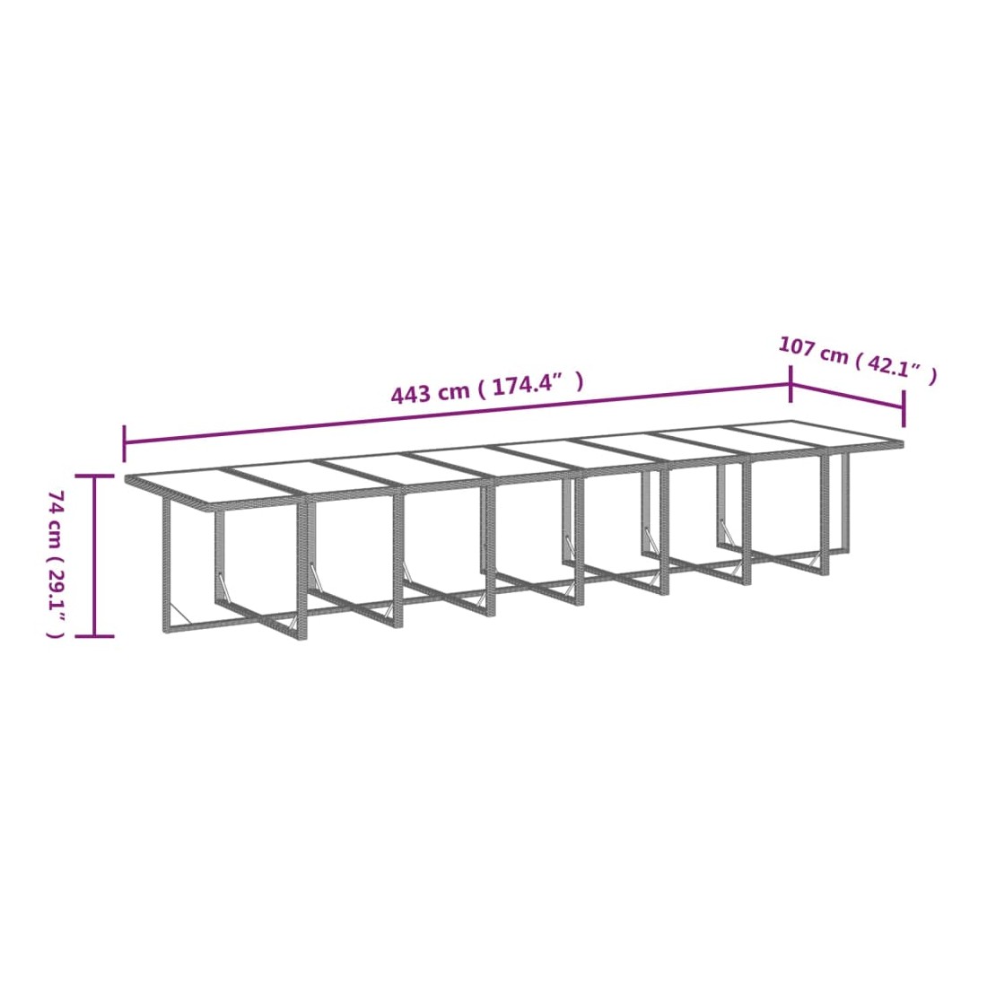 - Dimensions : 443 x 107 x 74 cm (L x l x H)