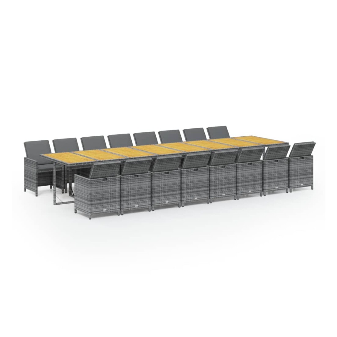Cet ensemble de salle à manger de jardin en résine tressée, au design élégant et unique, est un excellent choix pour manger et vous détendre dans votre espace de vie extérieur. Matériau pratique : enveloppé de résine tressée résistante aux intempéries, cet ensemble de salle à manger d'extérieur est facile à nettoyer et résistant à l'usure, offrant des années de détente de qualité.Structure stable et solide : les cadres en acier de la table et des chaises de jardin assurent robustesse et stabilité.Chaises flexibles : vous pouvez abaisser les dossiers et ranger les chaises d'extérieur sous la table, ce qui permet d'économiser un espace de stockage précieux lorsque l'ensemble n'est pas utilisé.Expérience confortable : les coussins de siège et de dossier épais, doux et remplis de mousse ajoutent également un confort d'assise supplémentaire. Remarque :Afin de prolonger la durée de vie de votre mobilier d'extérieur, nous vous recommandons de le protéger avec une housse imperméable.