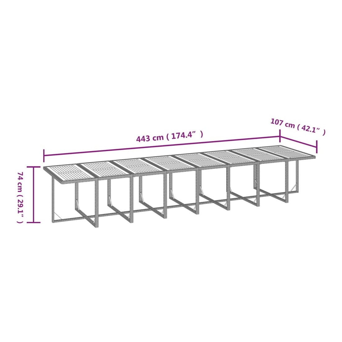 - Dimensions : 443 x 107 x 74 cm (L x l x H)