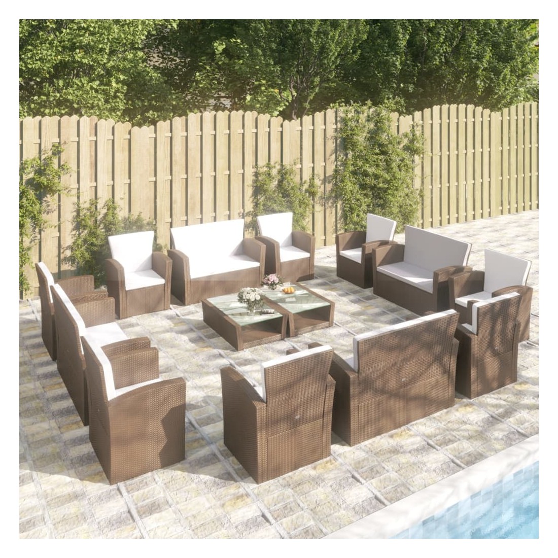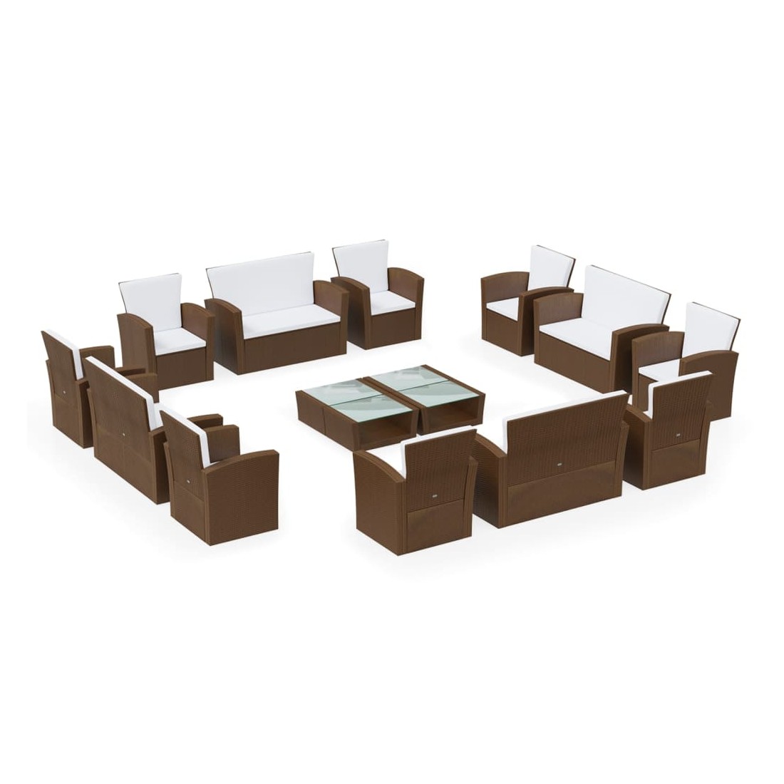 Salon de jardin 16 pcs avec coussins Résine tressée Marron