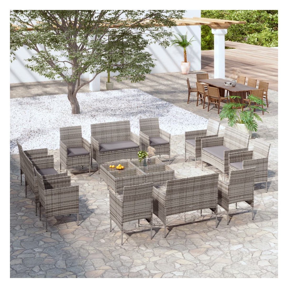 Créez un coin salon relaxant avec cet ensemble de salon de jardin en résine tressée. Avec un design élégant, il deviendra le point central de votre jardin ou terrasse ! L'ensemble de salon confortable a un cadre en acier enduit de poudre recouvert de résine tressée, ce qui le rend résistant et robuste. Grâce à leur construction légère, tous les articles sont faciles à déplacer. Le dessus de table en verre est également facile à nettoyer avec un chiffon humide. Les coussins bien rembourrés ajoutent un confort supplémentaire à votre temps de détente. De plus, les housses de coussin sont amovibles et lavables avec des fermetures éclair. Remarque : afin de prolonger la durée de vie des meubles d'extérieur, nous vous recommandons de les protéger avec une housse imperméable.
