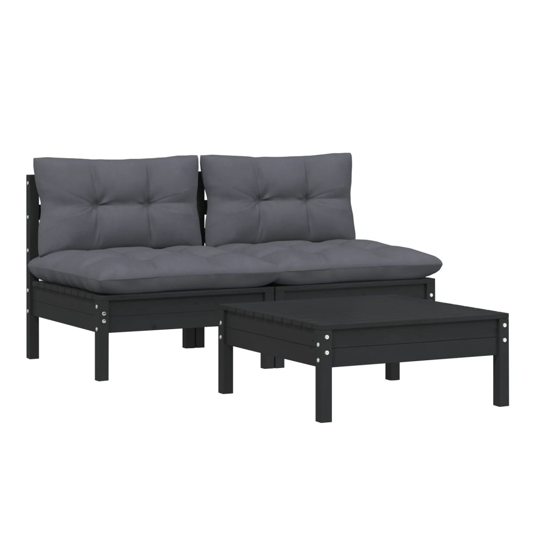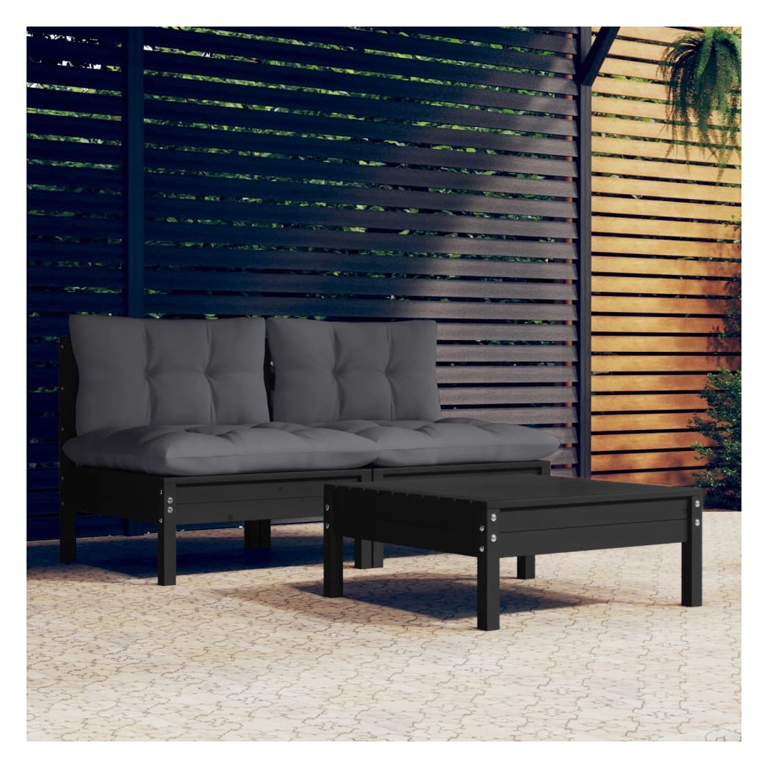 Salon de jardin 3 pcs avec coussins anthracite bois de pin