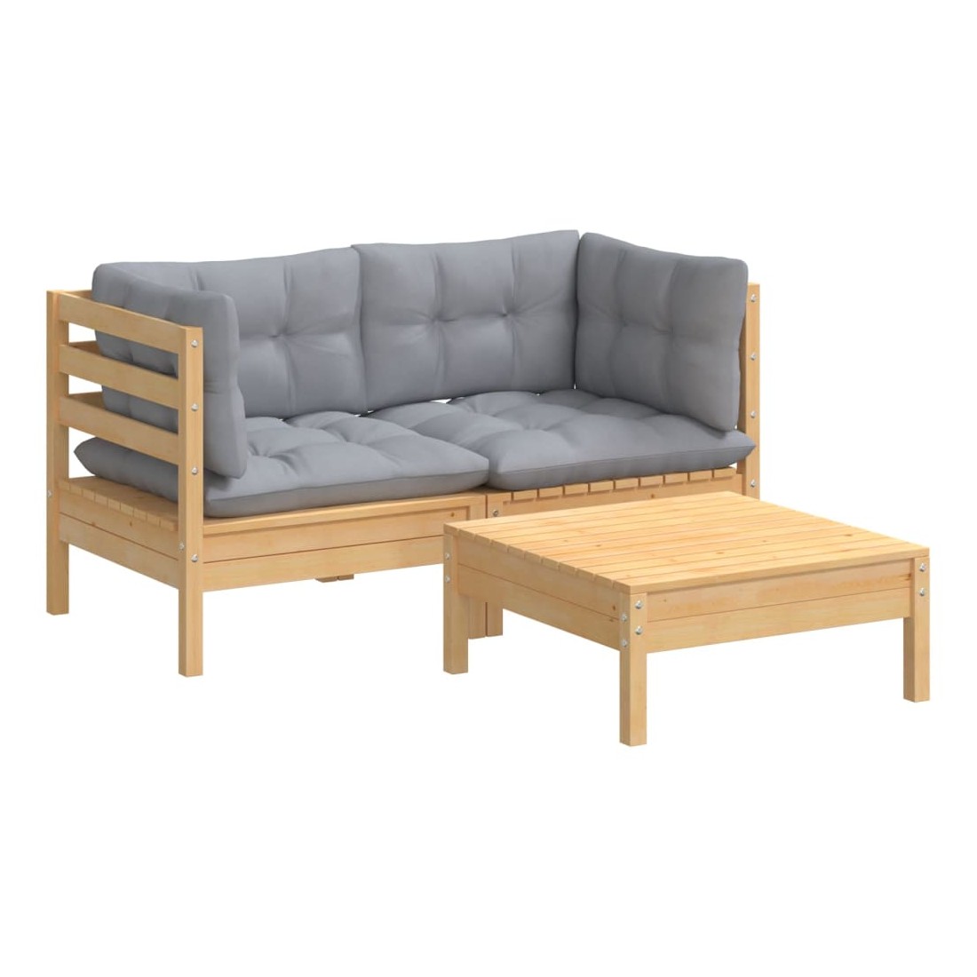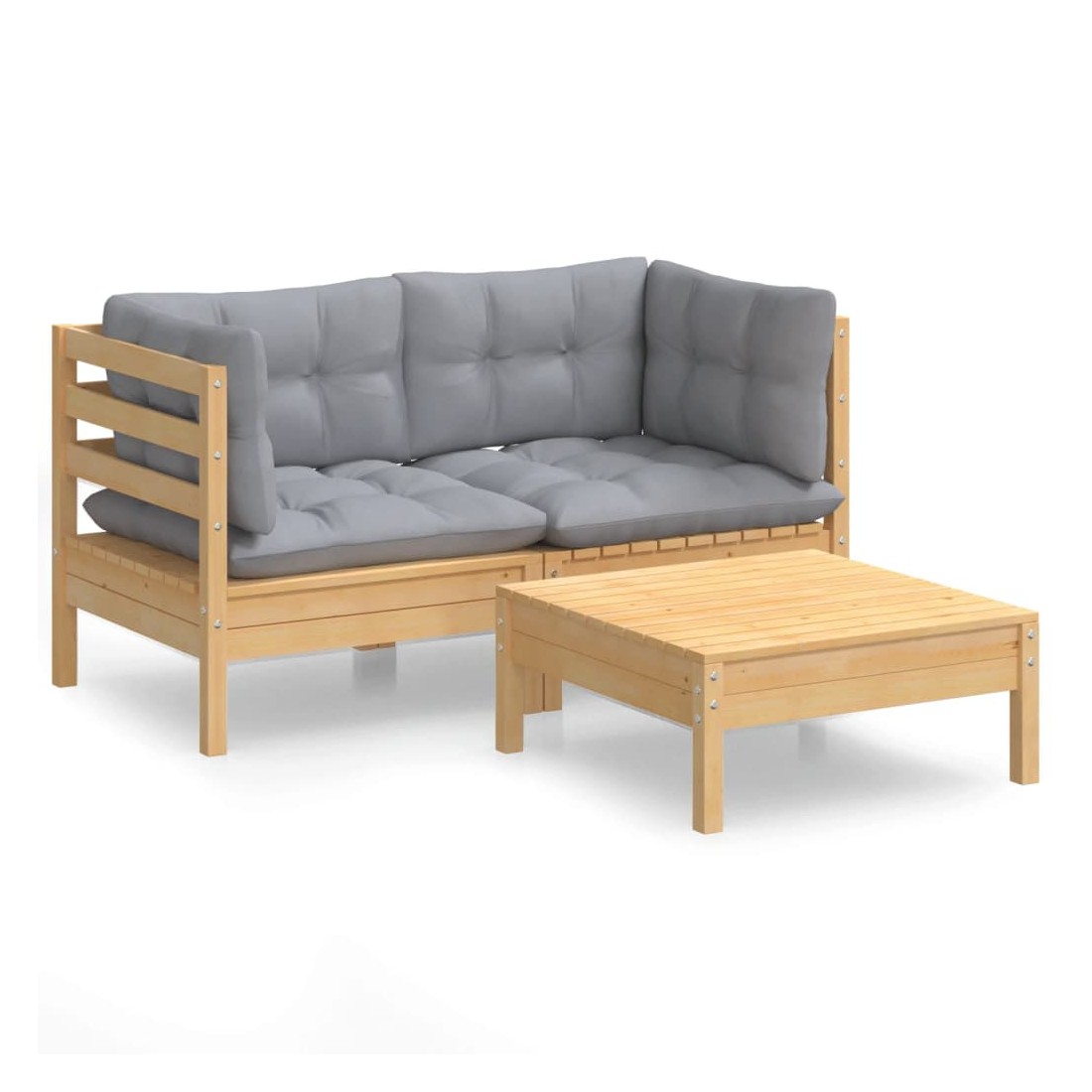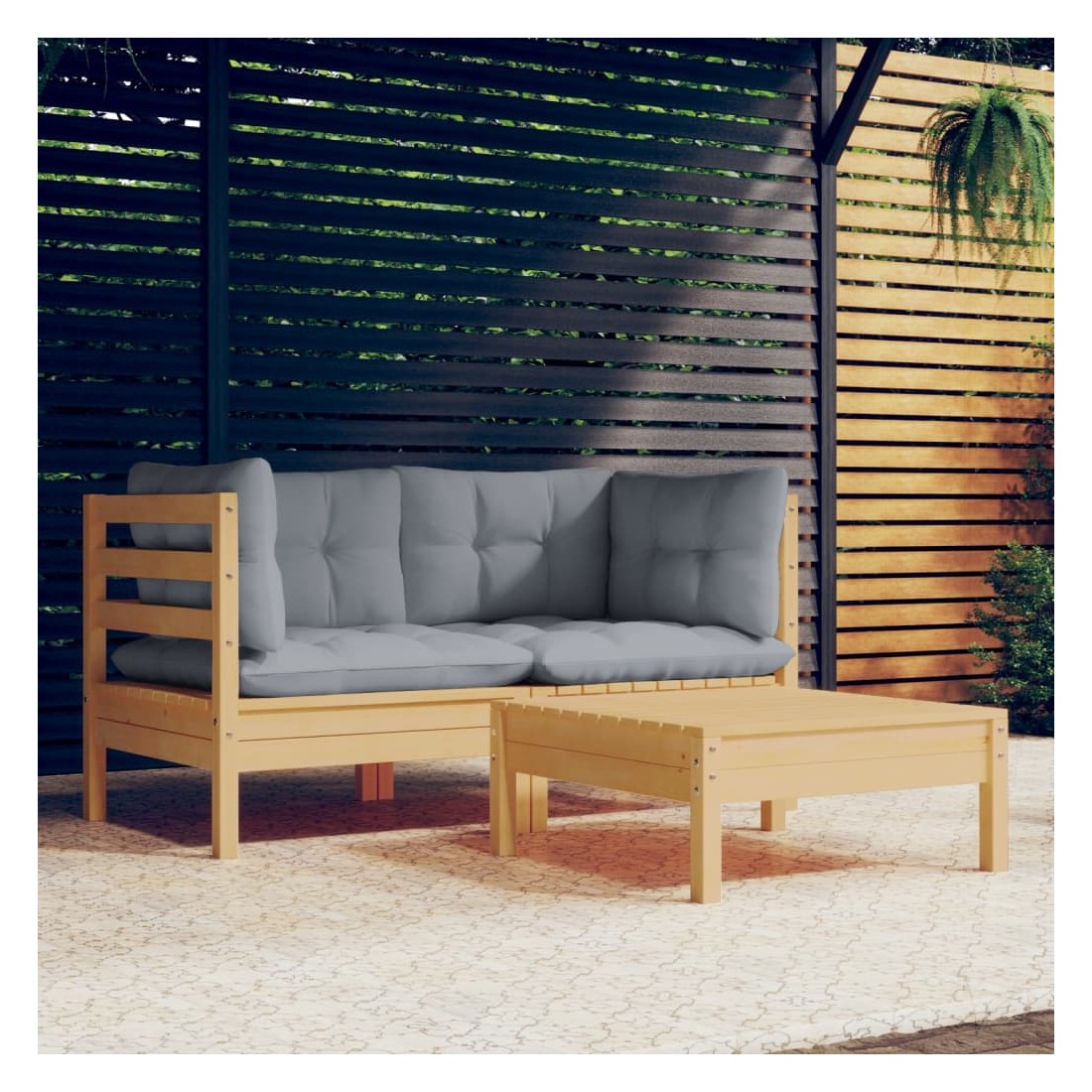 Salon de jardin 3 pcs avec coussins gris Bois de pin