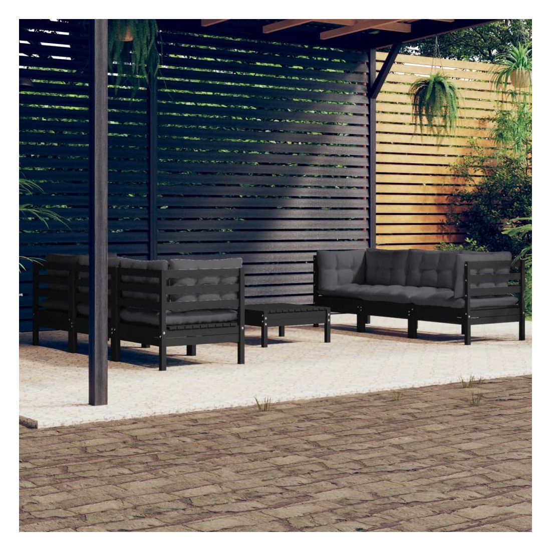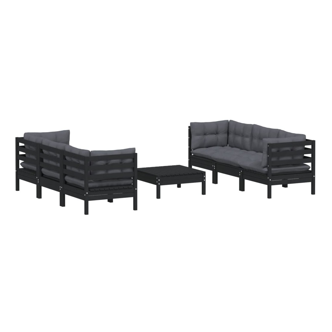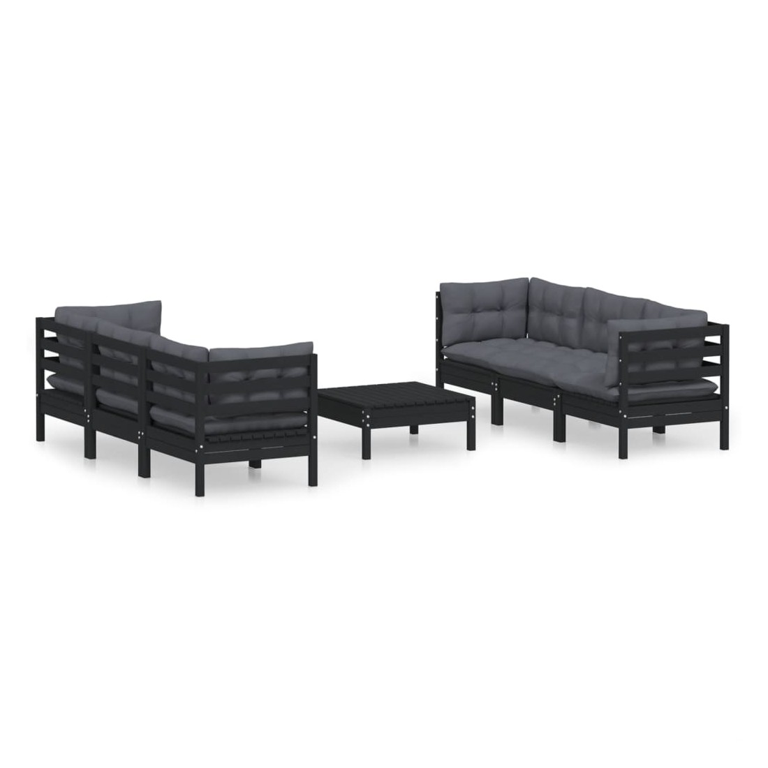 Salon de jardin 7 pcs avec coussins anthracite bois de pin