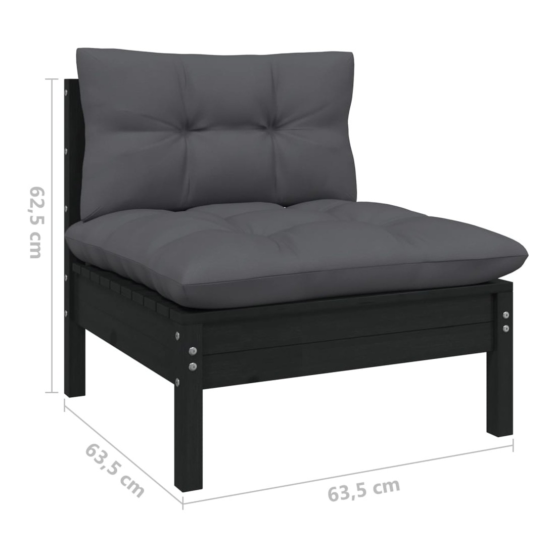 - Dimensions du canapé central/d'angle : 63,5 x 63,5 x 62,5 cm (l x P x H)