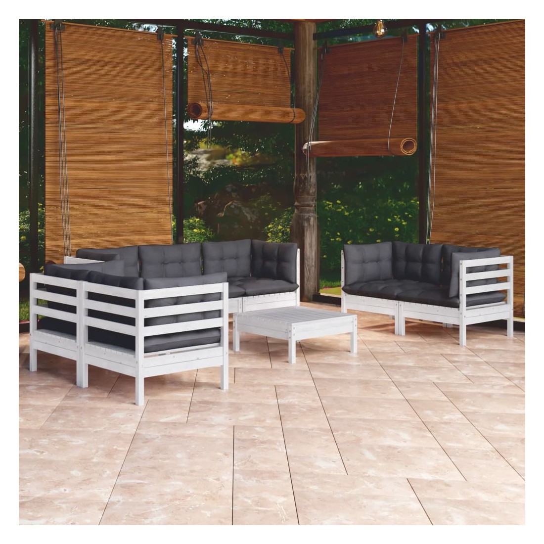 Ce salon de jardin est un excellent choix pour vous détendre et profiter du beau temps, faire une sieste ou discuter avec votre famille ou vos amis. Le salon de patio est fabriqué en bois de pin massif, ce qui le rend robuste et stable. Les coussins ajoutent un confort supplémentaire. Vous pouvez le combiner avec d’autres segments modulaires pour créer vos propres configurations de salon de jardin ! Remarque : afin de prolonger la durée de vie des meubles d'extérieur, nous vous recommandons de les protéger avec une housse imperméable.