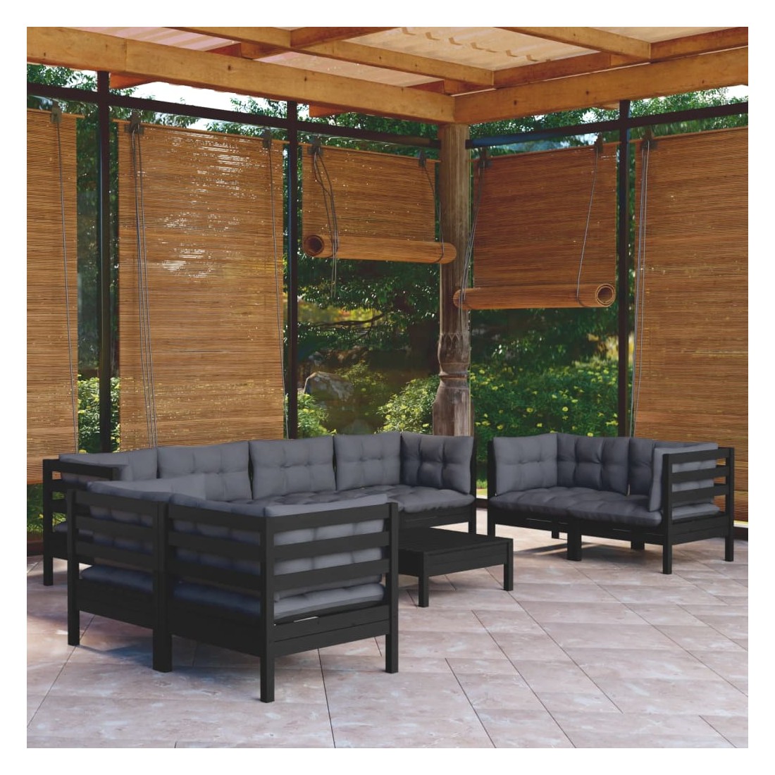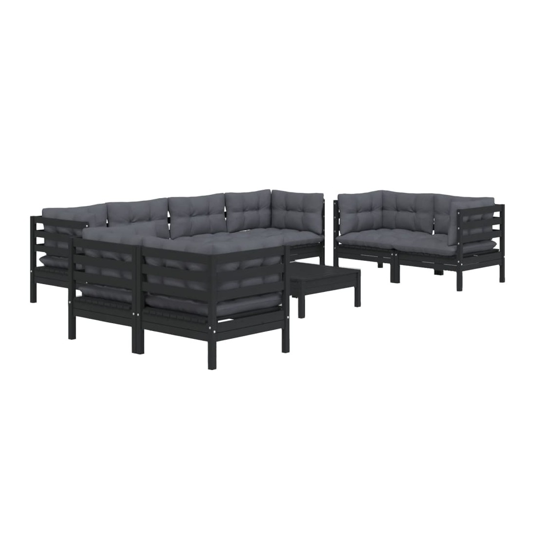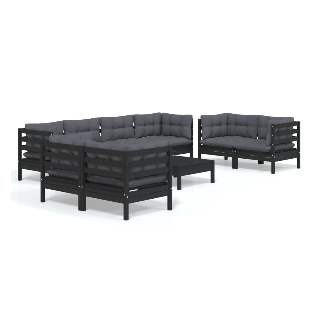 Salon de jardin 9 pcs avec coussins bois de pin massif