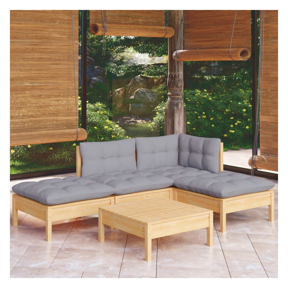 Cet ensemble de salon de jardin en bois est un choix excellent pour vous détendre et profiter du bon temps, faire une sieste ou discuter avec votre famille ou vos amis. Le salon de patio est fabriqué en bois de pin massif, ce qui le rend robuste et stable. Les coussins ajoutent un confort supplémentaire. Vous pouvez le combiner avec d’autres segments modulaires pour créer vos propres configurations de salon de jardin ! Remarque : afin de prolonger la durée de vie des meubles d'extérieur, nous vous recommandons de les protéger avec une housse imperméable.