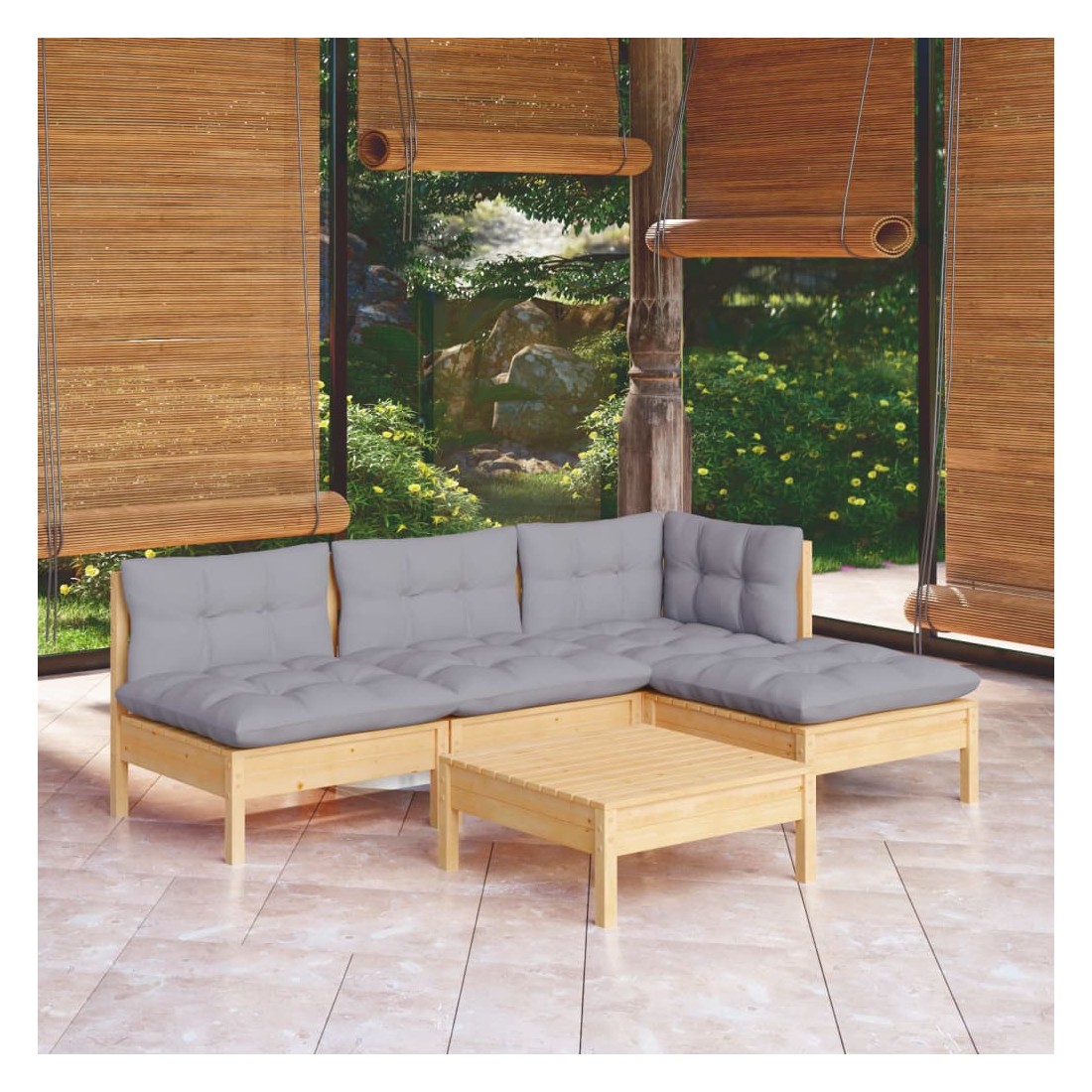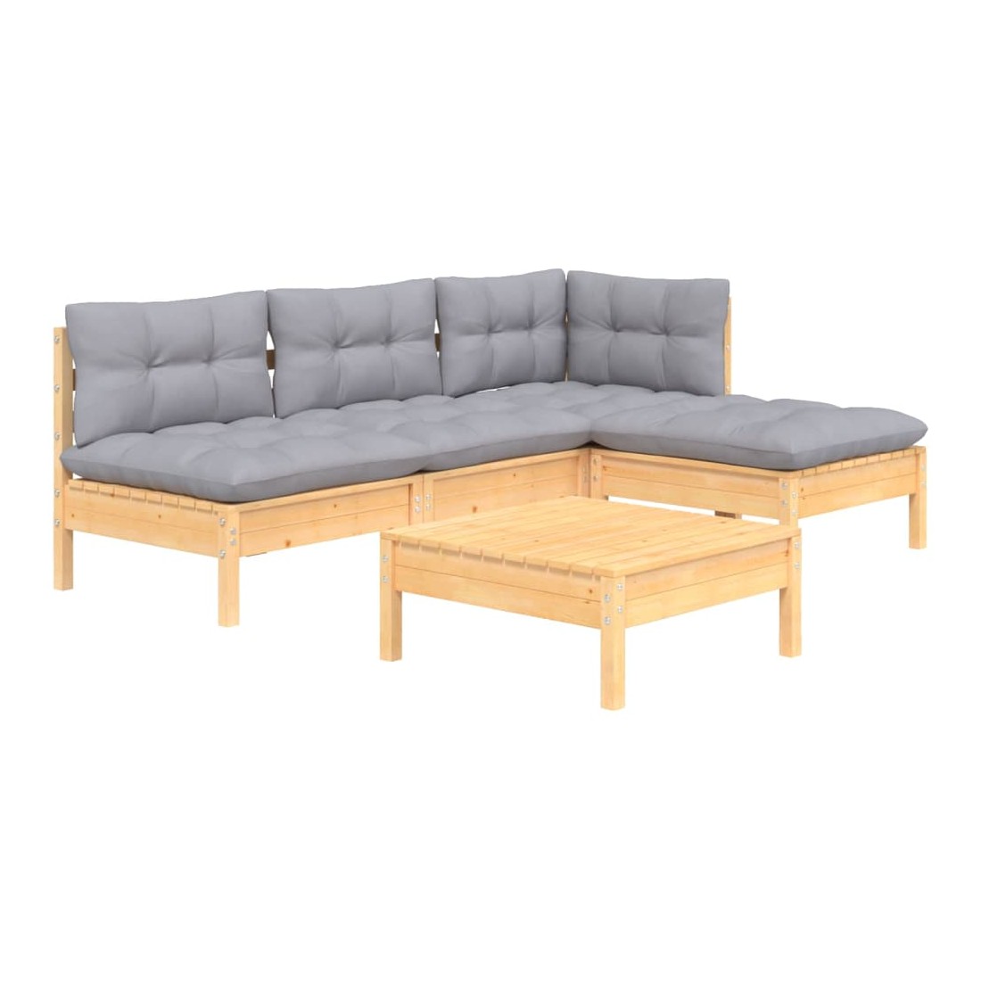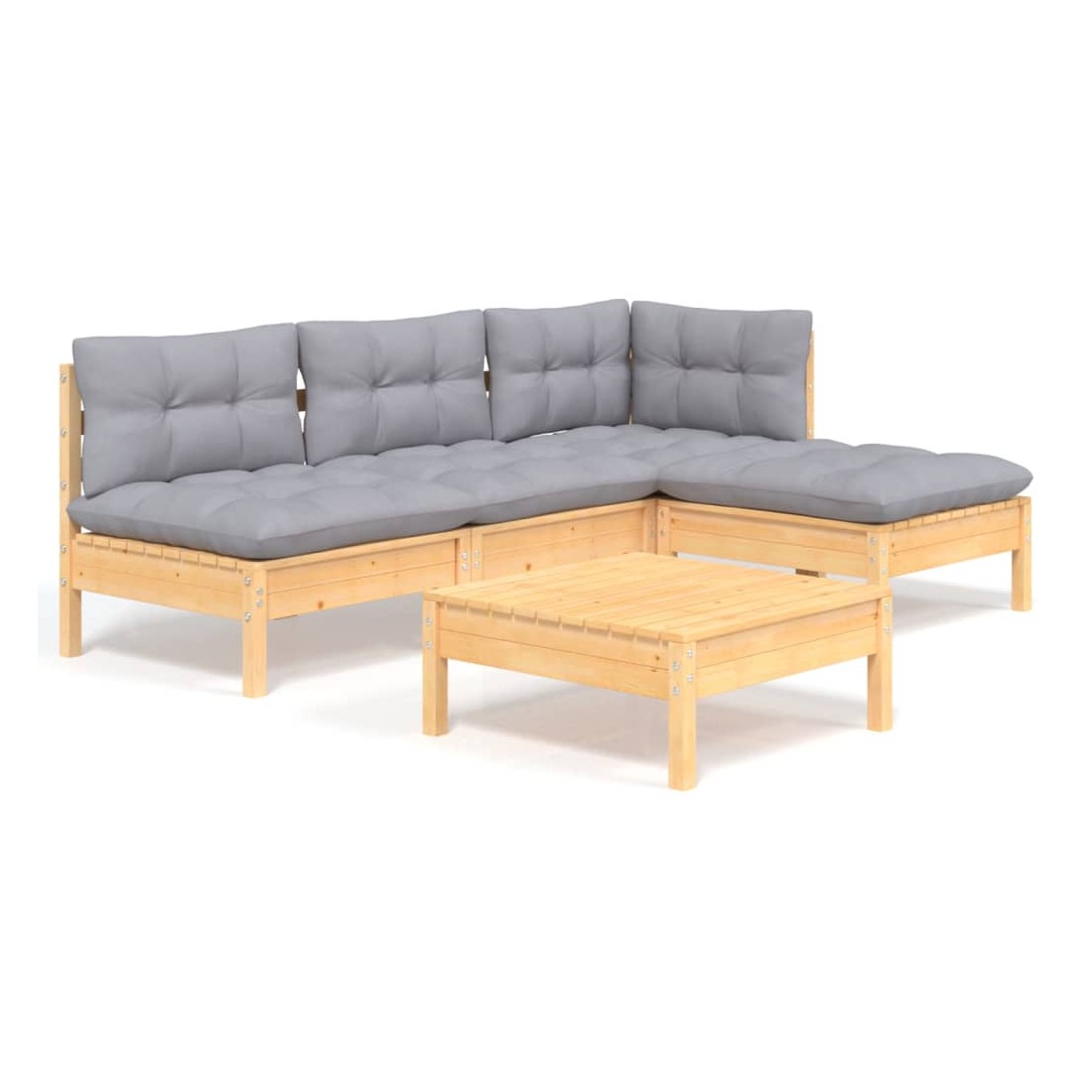 Cet ensemble de salon de jardin en bois est un choix excellent pour vous détendre et profiter du bon temps, faire une sieste ou discuter avec votre famille ou vos amis. Le salon de patio est fabriqué en bois de pin massif, ce qui le rend robuste et stable. Les coussins ajoutent un confort supplémentaire. Vous pouvez le combiner avec d’autres segments modulaires pour créer vos propres configurations de salon de jardin ! Remarque : afin de prolonger la durée de vie des meubles d'extérieur, nous vous recommandons de les protéger avec une housse imperméable.