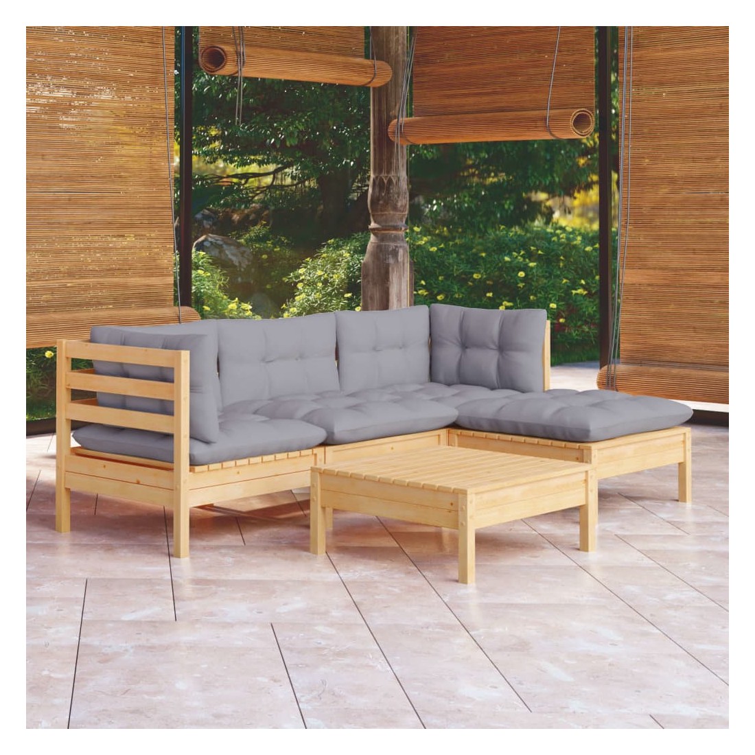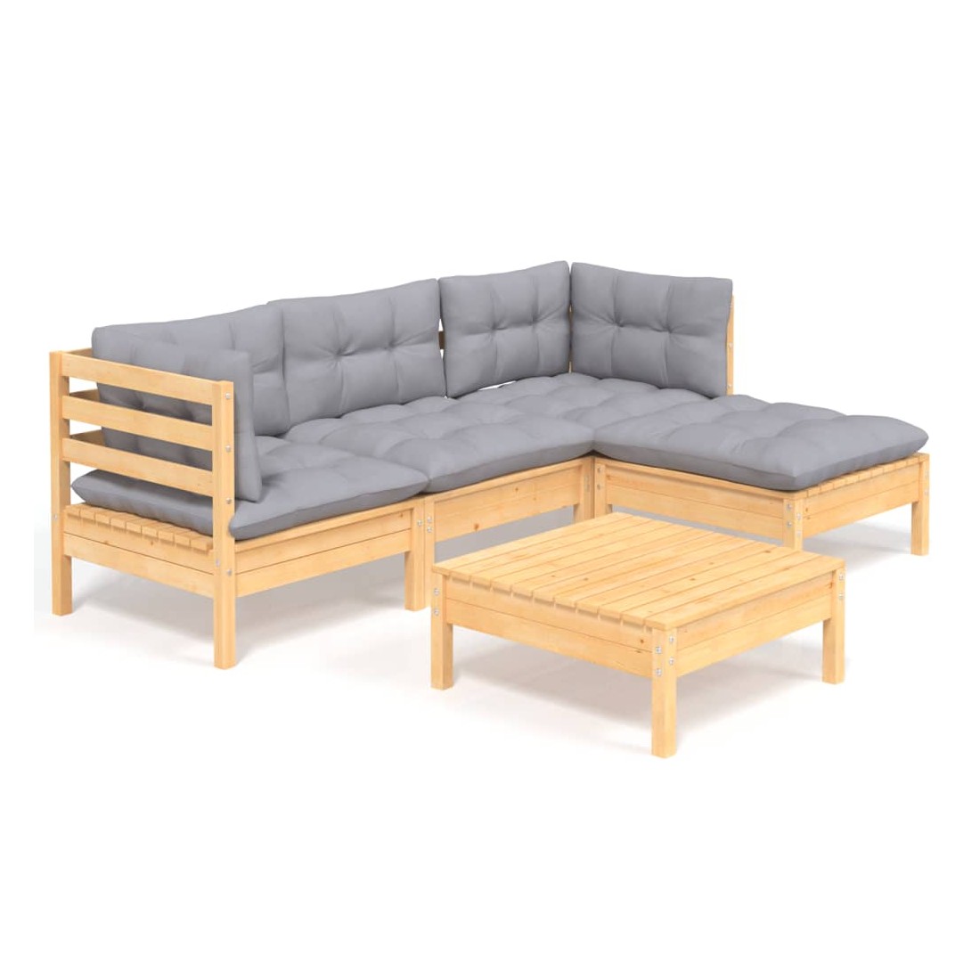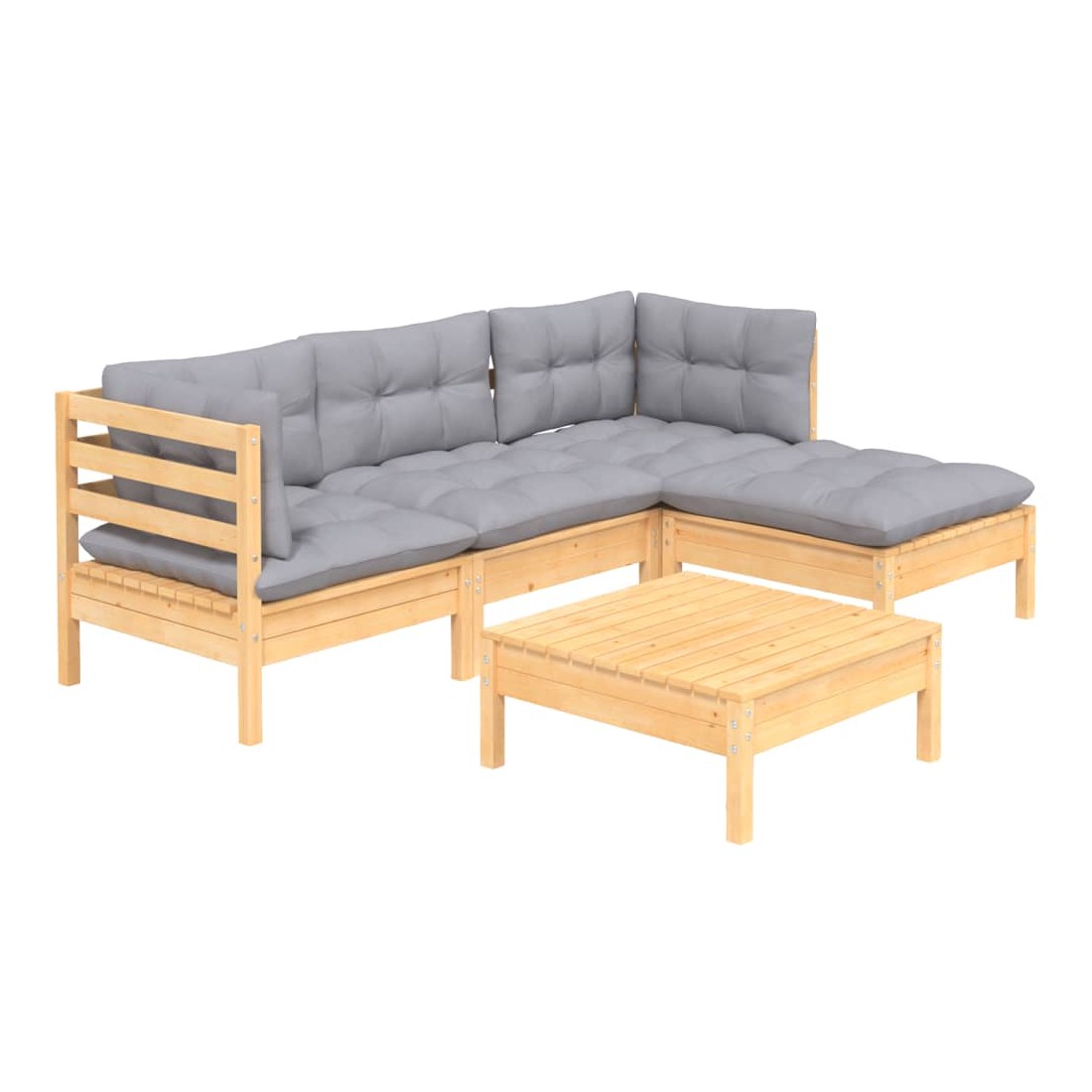 Salon de jardin 5 pcs avec coussins gris bois de pin