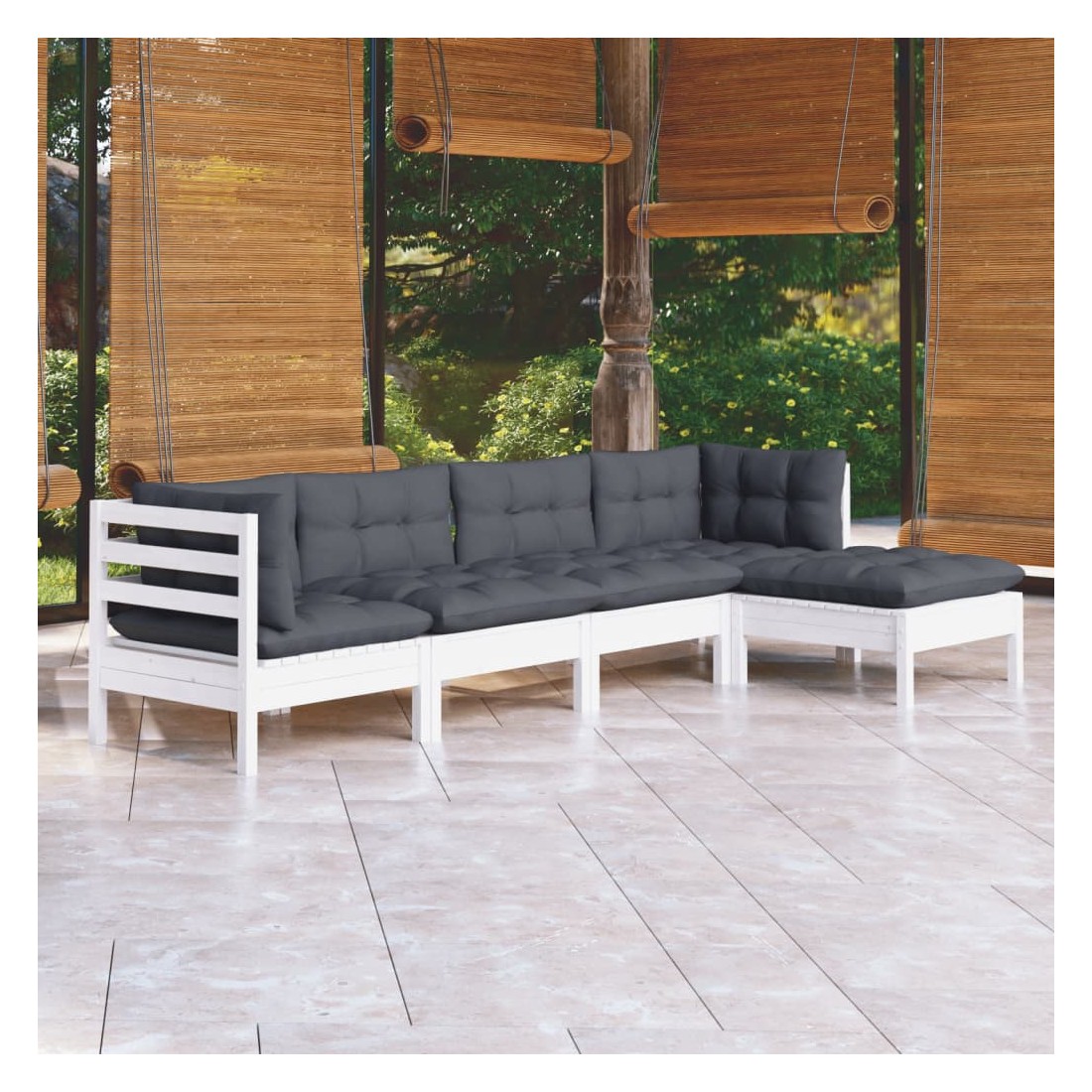 Cet ensemble de salon de jardin en bois est un choix excellent pour vous détendre et profiter du bon temps, faire une sieste ou discuter avec votre famille ou vos amis. Le salon de patio est fabriqué en bois de pin massif, ce qui le rend robuste et stable. Les coussins ajoutent un confort supplémentaire. Vous pouvez le combiner avec d’autres segments modulaires pour créer vos propres configurations de salon de jardin ! Remarque : afin de prolonger la durée de vie des meubles d'extérieur, nous vous recommandons de les protéger avec une housse imperméable.