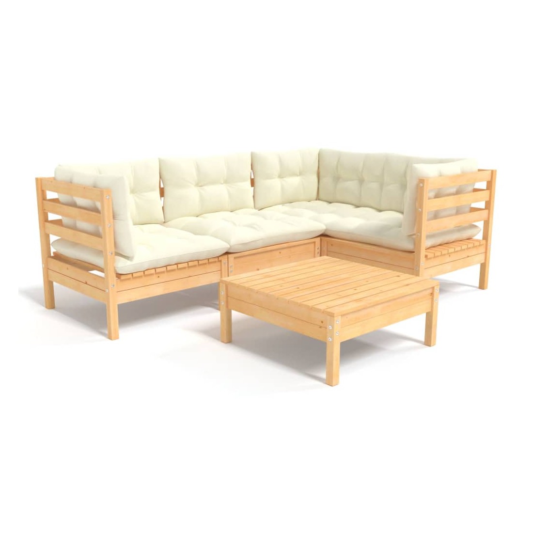 Cet ensemble de salon de jardin en bois est un choix excellent pour vous détendre et profiter du bon temps, faire une sieste ou discuter avec votre famille ou vos amis. Le salon de patio est fabriqué en bois de pin massif, ce qui le rend robuste et stable. Les coussins ajoutent un confort supplémentaire. Vous pouvez le combiner avec d’autres segments modulaires pour créer vos propres configurations de salon de jardin ! Remarque : afin de prolonger la durée de vie des meubles d'extérieur, nous vous recommandons de les protéger avec une housse imperméable.